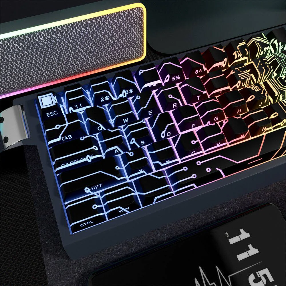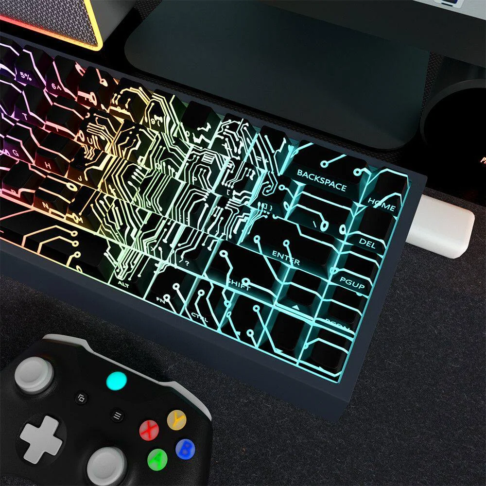 Unleash the essence of technology at your fingertips with our Microchip Cherry Keycap Set. Designed for the discerning enthusiast, these unique PBT Side-Lit Keycaps transform your mechanical keyboard into a futuristic command center. That inspiring creativity with every keystroke. Each keycap features intricate circuit board patterns and glowing side-lit legends, bringing a distinct tech-themed aesthetic to your desktop. Crafted from high-quality PBT material, these Custom Mechanical Keycaps offer exceptional durability and a satisfying typing experience. The dye-sublimation process ensures the intricate microchip design remains vibrant and resistant to wear, while the ergonomic profile provides comfortable use during long gaming sessions or creative workflows. Elevate your setup and command your digital world with a touch of advanced design.