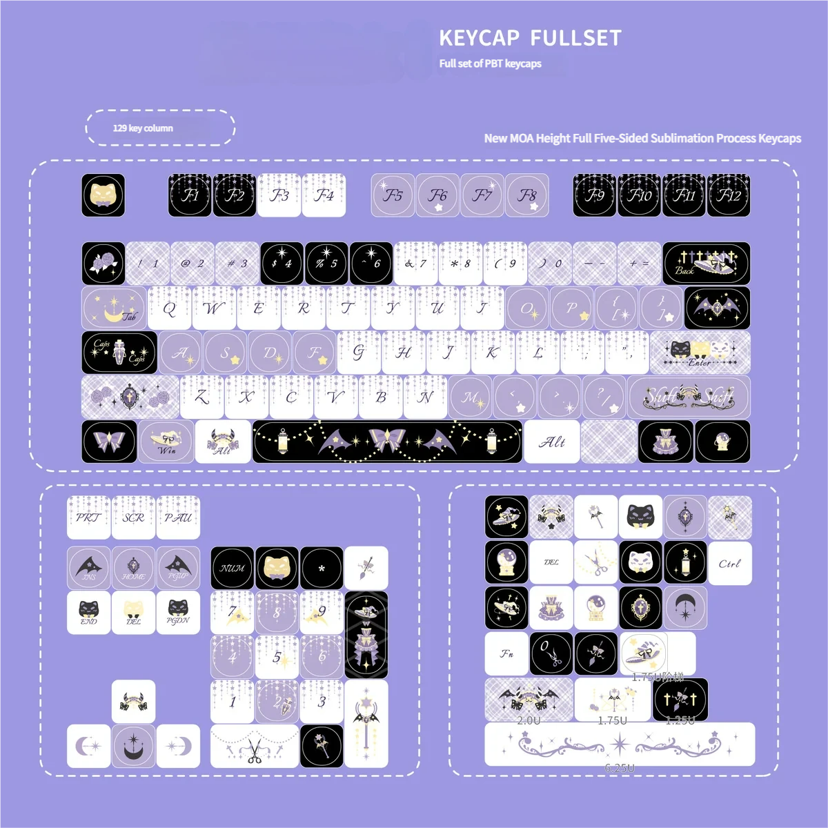 Step into a realm of enchantment with our Star Weaver Witch MOA Keycap Set, designed to transform your keyboard into a canvas of celestial artistry. This unique custom keyboard set embraces a captivating fantasy keycap theme. That featuring intricate mystical designs and witchy elements that evoke a sense of wonder. Each keycap tells a story, weaving magic into your daily typing experience and elevating your setup to a truly personalized masterpiece. Crafted from high-quality PBT material, these MOA PBT Keycaps offer exceptional durability and a satisfying tactile feel. The vibrant, long-lasting legends are achieved through advanced dye-sublimation keycaps technology. With an ergonomic MOA profile, these keycaps provide a comfortable typing experience, reducing strain and enhancing your creative flow. Perfect for enthusiasts seeking a unique keyboard aesthetic, this set is more than just keycaps; it’s an invitation to personalize your space with a touch of magic.