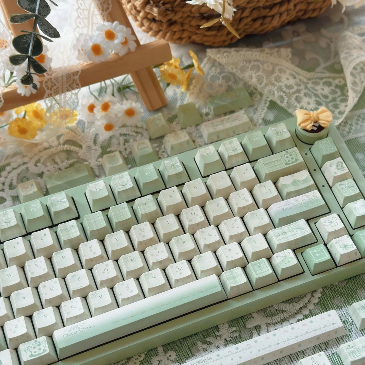 Transform your workspace into a haven of peace with Tranquil Moss Whisper Cherry Keycap Set. These premium moss keycaps are more than just accessories; they are a serene escape. That embodying nature’s tranquil whisper and bringing an earthy elegance to your personalized desk setup. Crafted from durable PBT material, these keycaps ensure longevity and a satisfying tactile experience that resists shine over time. The advanced dye-sublimation process guarantees vibrant, fade-resistant legends. Perfectly capturing the serene moss-green hues and earthy tones of the visual theme. Designed in a classic Cherry Profile, this PBT keycap set offers superior typing comfort and compatibility with most mechanical keyboards. Elevate your custom keyboard aesthetic with a touch of artistic flair and a calming presence.