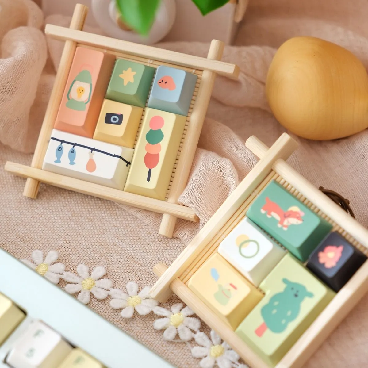 Refresh your keyboard with the OEM Keycap Set from Mountain Camping! Light green, green, yellow and brown keycaps contrast with a clean white foundation in this gorgeous set. Each keycap adds a personal touch to your setup with its distinctive font style and green and white writing. The mood of outdoor experiences is perfectly captured by the adorable patterns of trees and a dog emblem. These keycaps crafted by excellent PBT material which guarantees longevity and a high end feel. This keycap set is perfect for outdoor enthusiasts and nature lovers as it turns your keyboard into a stunning focal point that captures your love of camping!