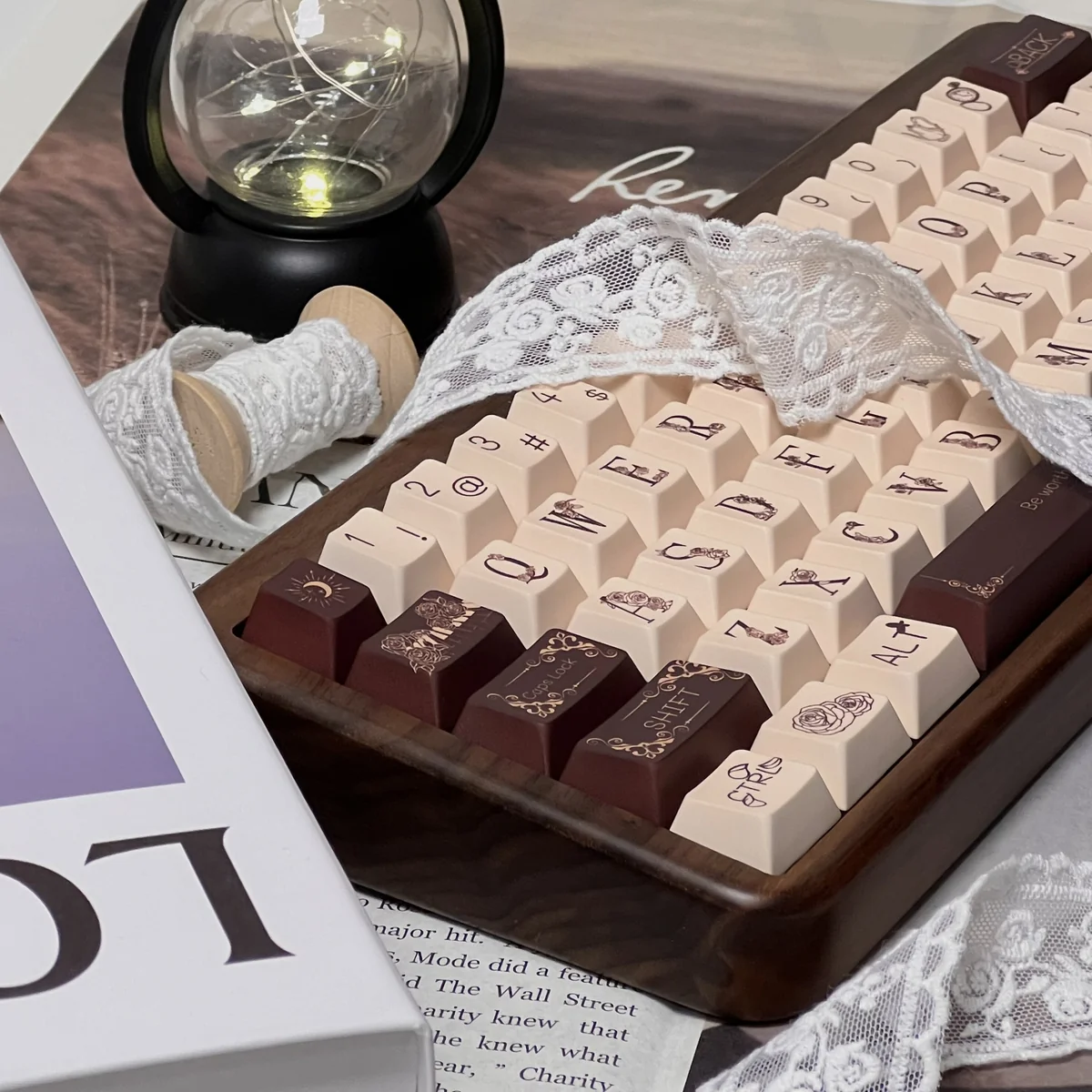 Immerse your creative space in unparalleled elegance with our Music Rose Cherry Keycap Set. Each keycap in this premium PBT keycap set showcases delicate rose and musical motifs, meticulously crafted to evoke a sense of romantic harmony and artistic sanctuary. Utilizing advanced dye-sublimation keycaps technology, the intricate designs are permanently infused into the durable PBT material。 That ensuring vibrant, fade-resistant aesthetics that will last for years. Beyond their stunning visual appeal, these floral mechanical keycaps offer a superior tactile experience. Which transforming every keystroke into a moment of pure comfort and inspiration. Designed for those who appreciate the finer details, the Music Rose Keycaps are more than just an accessory. Which they are an invitation to personalize your desk into an elegant symphony of beauty and comfort, perfect for any creative endeavor.