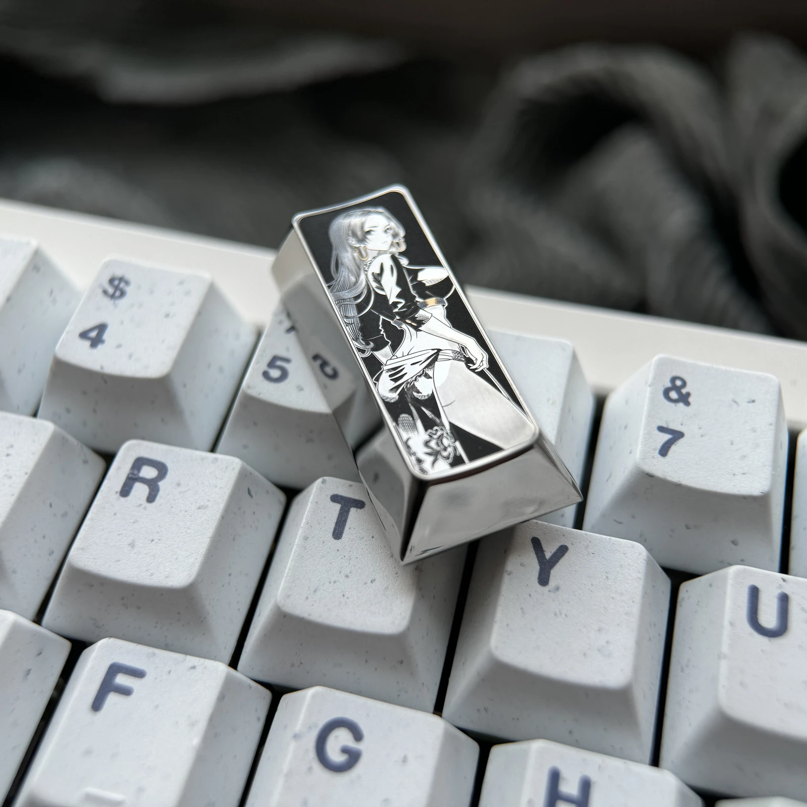 Add a touch of anime elegance to your setup with this Boa Hancock Keycaps from anime ONE PIECE. They are made from durable titanium and featuring a stunning design. This product was available in two captivating options: Vertical Enter Key and Vertical Plus Sign Key. These keycaps are showing Boa Hancock in a striking black-and-white illustration that can highlights her beautifully depicted figure. The silver embellishments on the keycaps will adding to their visual appeal, making them a fitting tribute to one of anime’s most renowned characters.Lets elevate your typing experience and express your fandom with the Boa Hancock Keycaps, a gorgeous complement to any mechanical keyboard!