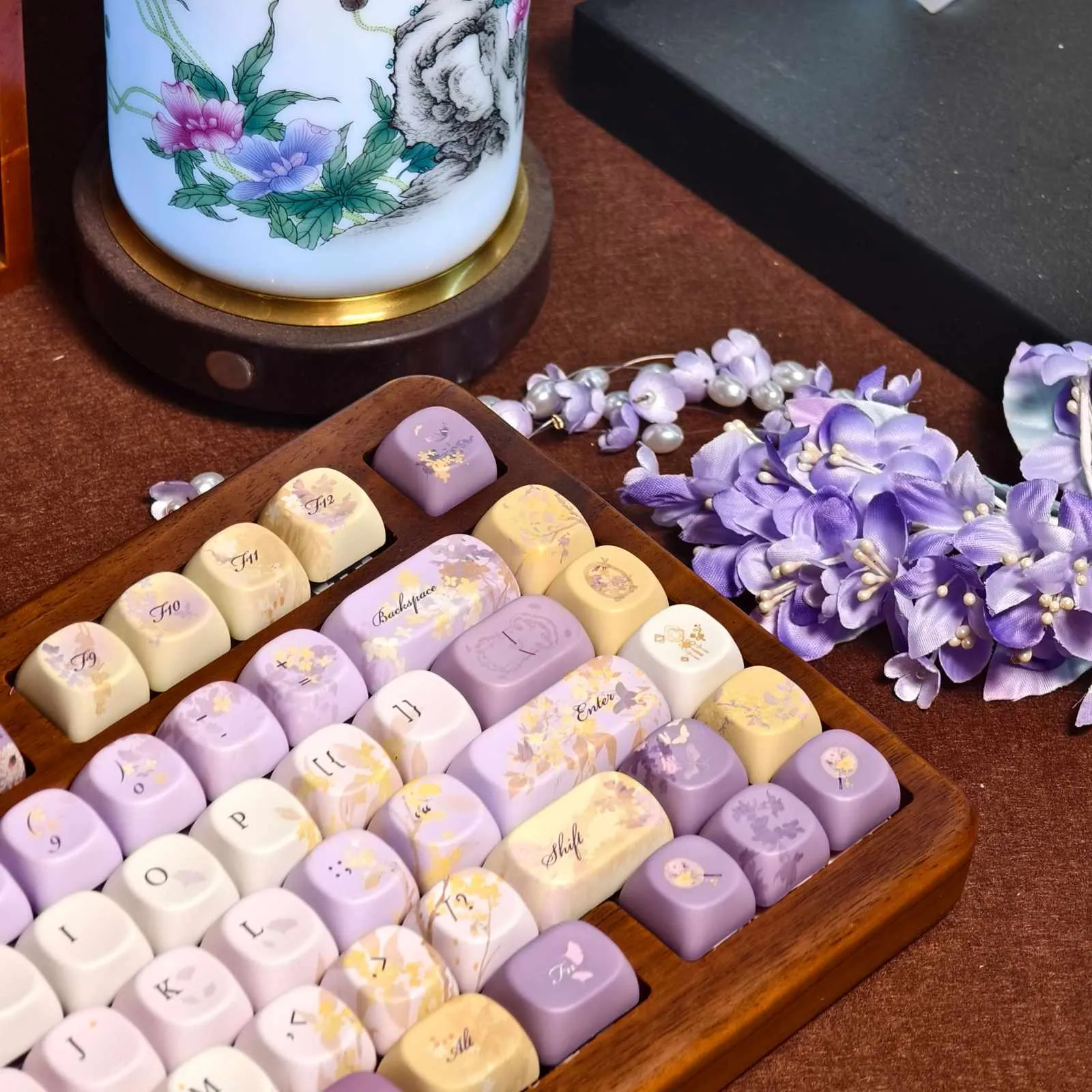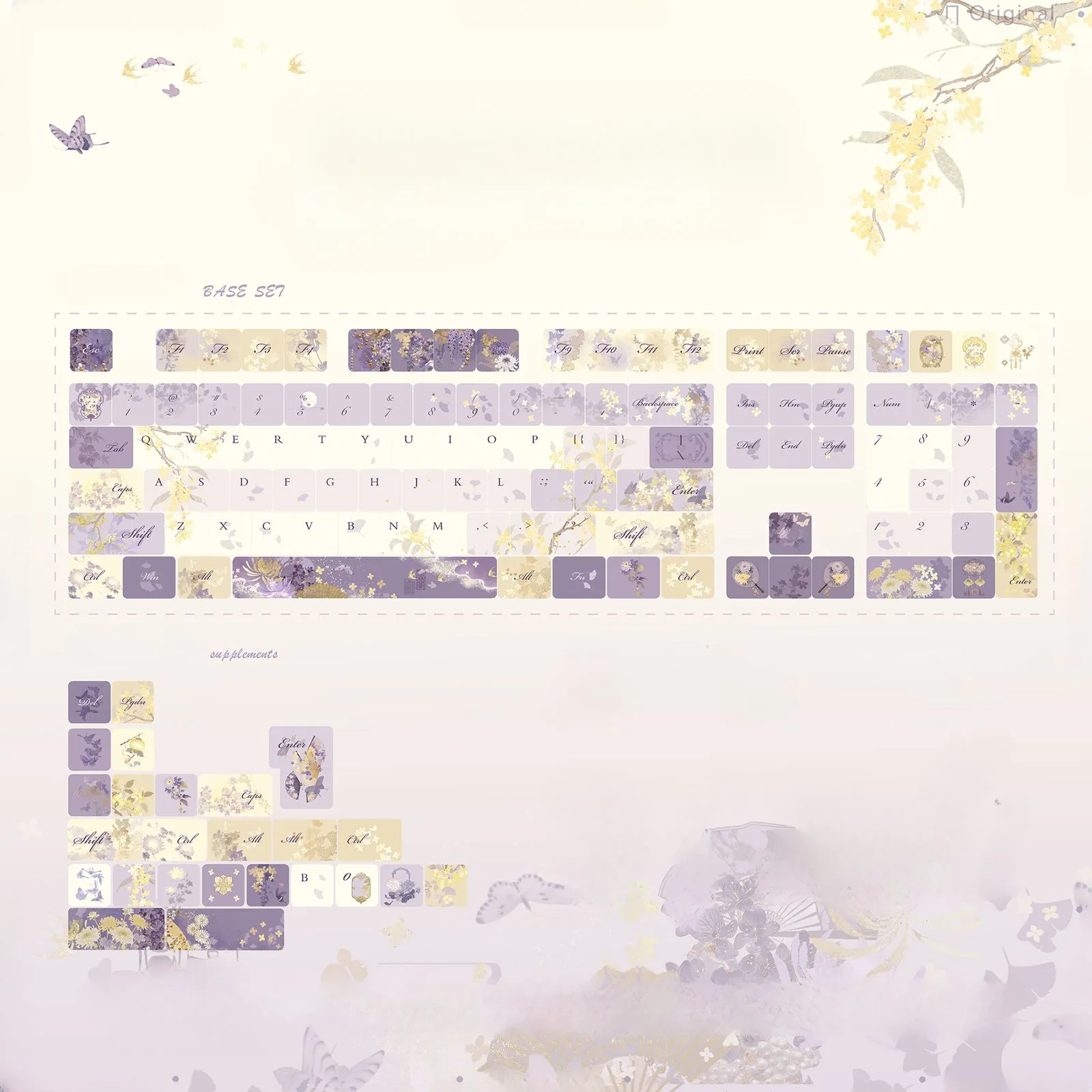Invest in the gorgeous Osmanthus Bloom Series Keycap Set to enhance your typing experience! The Cherry Keycap Set, the Cherry Keycap Set with Double Lettering or the MOA Keycap Set are three gorgeous possibilities. Each set features a stunning blend of purple, yellow and white keycaps that produce a lively and upbeat look. While some keycaps have lovely flower symbol patterns such as the chic space key. Which with the distinctive purple lettering adds a bit of personality. These keycaps long lifespan and pleasing feel are guaranteed by their construction from sturdy PBT. This series which comes in Cherry or MOA profiles. That is ideal for any keyboard aficionado looking to upgrade with a floral design!