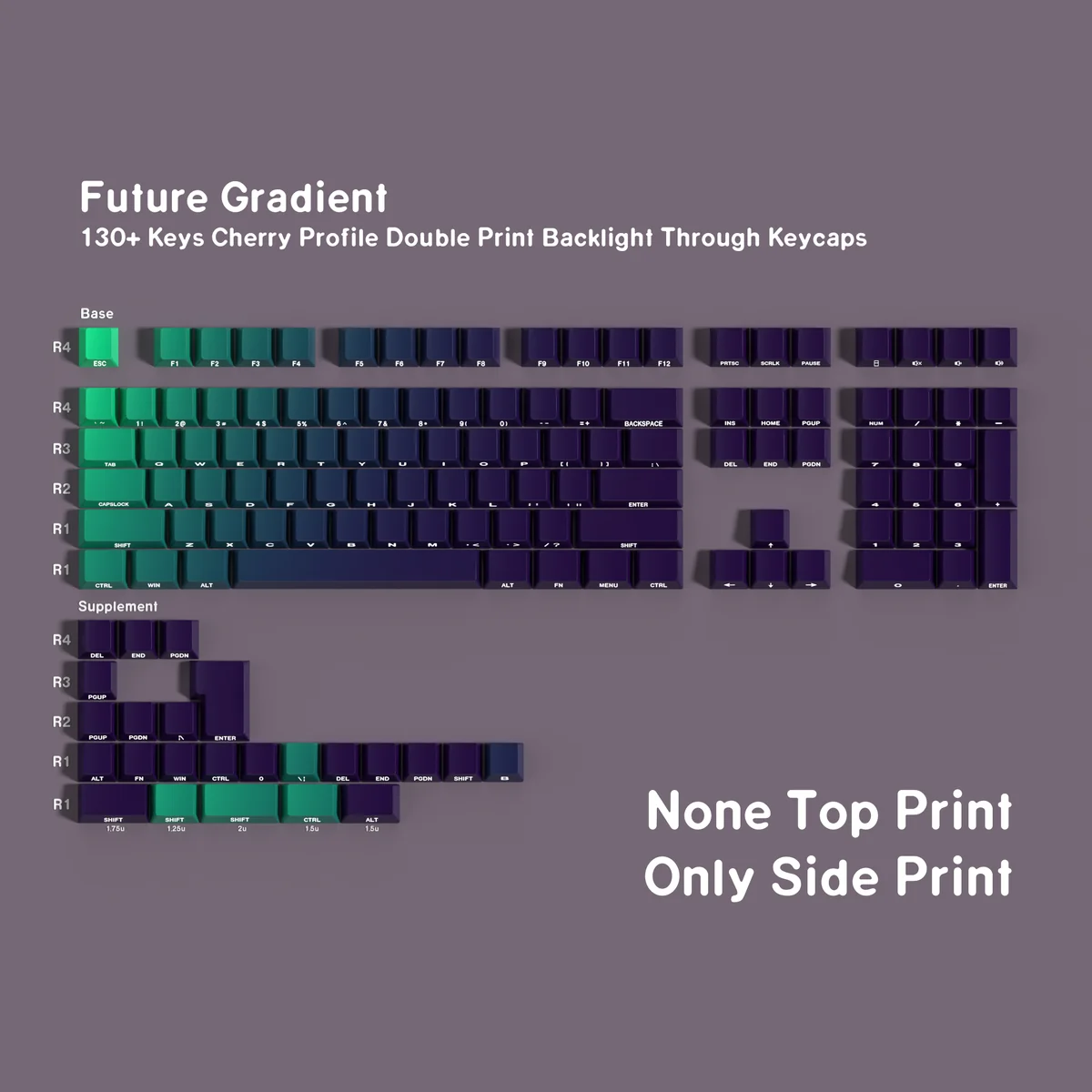 Embark on an extraordinary visual and tactile journey with our Future Gradient Cherry Keycap Set, meticulously designed to ignite excitement in every keystroke. Immerse yourself in a dynamic spectrum of colors, where smooth transitions evoke a captivating futuristic aesthetic. These premium PBT Keycaps are renowned for their exceptional durability and a satisfyingly textured feel that resists shine. Which ensuring your setup remains pristine and vibrant for years to come. Beyond their stunning appearance, this PBT Keycap Set prioritizes ergonomic comfort. Each keycap is sculpted to provide a natural, comfortable typing experience, making long sessions feel effortless and enjoyable. Elevate your custom mechanical keyboard with these unique Future Gradient Keycaps, transforming it into a personalized masterpiece. Whether you’re a gamer, programmer, or digital artist, these Ergonomic PBT Keycaps offer a blend of high performance and artistic expression.