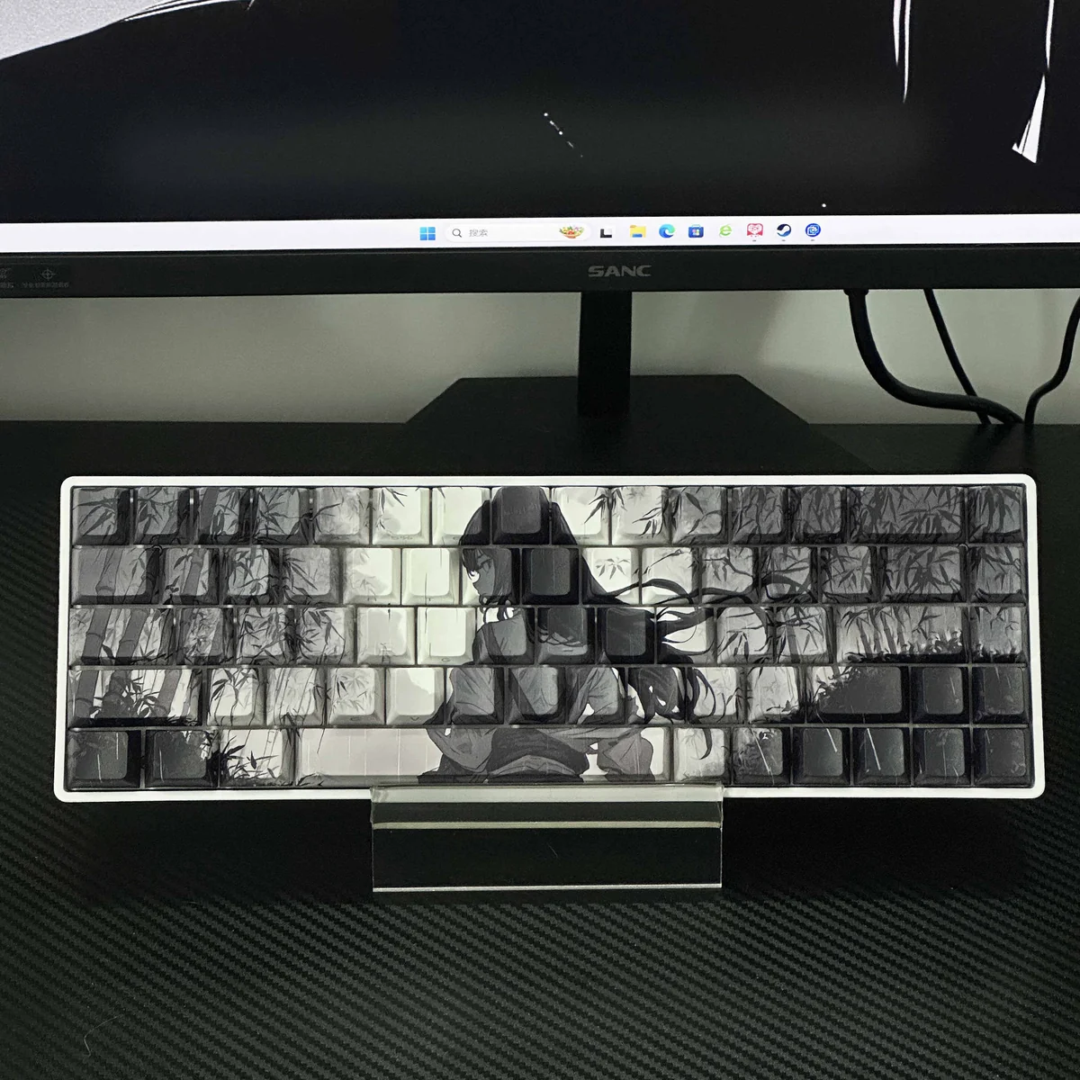 Immerse your workspace in tranquility with our Serene Bamboo Cherry Keycap Set, a masterpiece of East Asian artistry. Each keycap set is meticulously crafted from durable PBT material, featuring our unique side-printed design that allows a captivating, subtle glow to emanate from the legends. The original bamboo themed keycaps are brought to life through advanced dye-sublimation, ensuring the intricate illustrations of serene bamboo motifs and charming original characters remain vibrant and resistant to wear. These custom mechanical keycaps are not just about aesthetics; they offer a superior, tactile typing experience. Designed for elegance and personalization, these PBT Shine-Through Keycaps transform your keyboard into a canvas, reflecting a refined taste and a love for unique, high-quality accessories. Elevate every keystroke with this blend of traditional artistry and modern functionality.