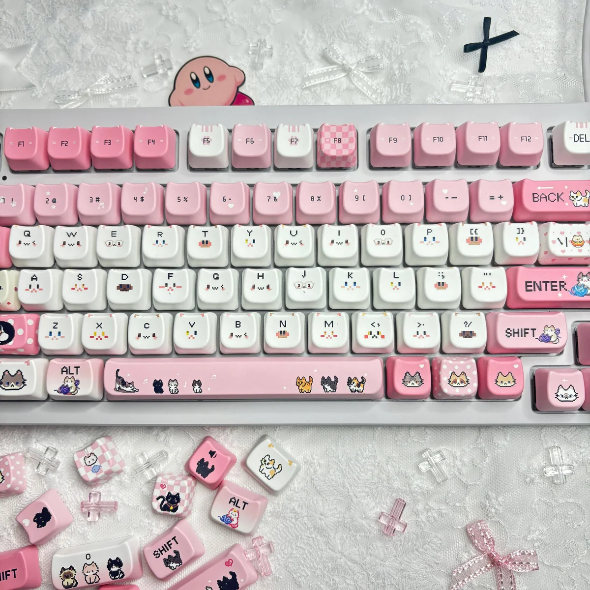 Unleash a wave of joy and nostalgia across your fingertips with our charming Pixel Cat Keycap Set! This delightful PBT Keycap Set is designed to transform your keyboard into a vibrant retro masterpiece, brimming with adorable pixelated feline art. Experience superior typing comfort and a unique aesthetic thanks to the distinct MOA Profile Keycaps, ergonomically designed for a natural feel. Each of the 130 keys boasts crisp, fade-resistant legends crafted with advanced Dye-Sub Keycaps technology, ensuring your cute cat companions stay vibrant for years to come. Perfect for gamers, creatives, or anyone seeking to inject personality into their setup, these Cute Keycaps offer unmatched personalization. Elevate your desk with this playful touch and let your keyboard tell a story of whimsical charm.