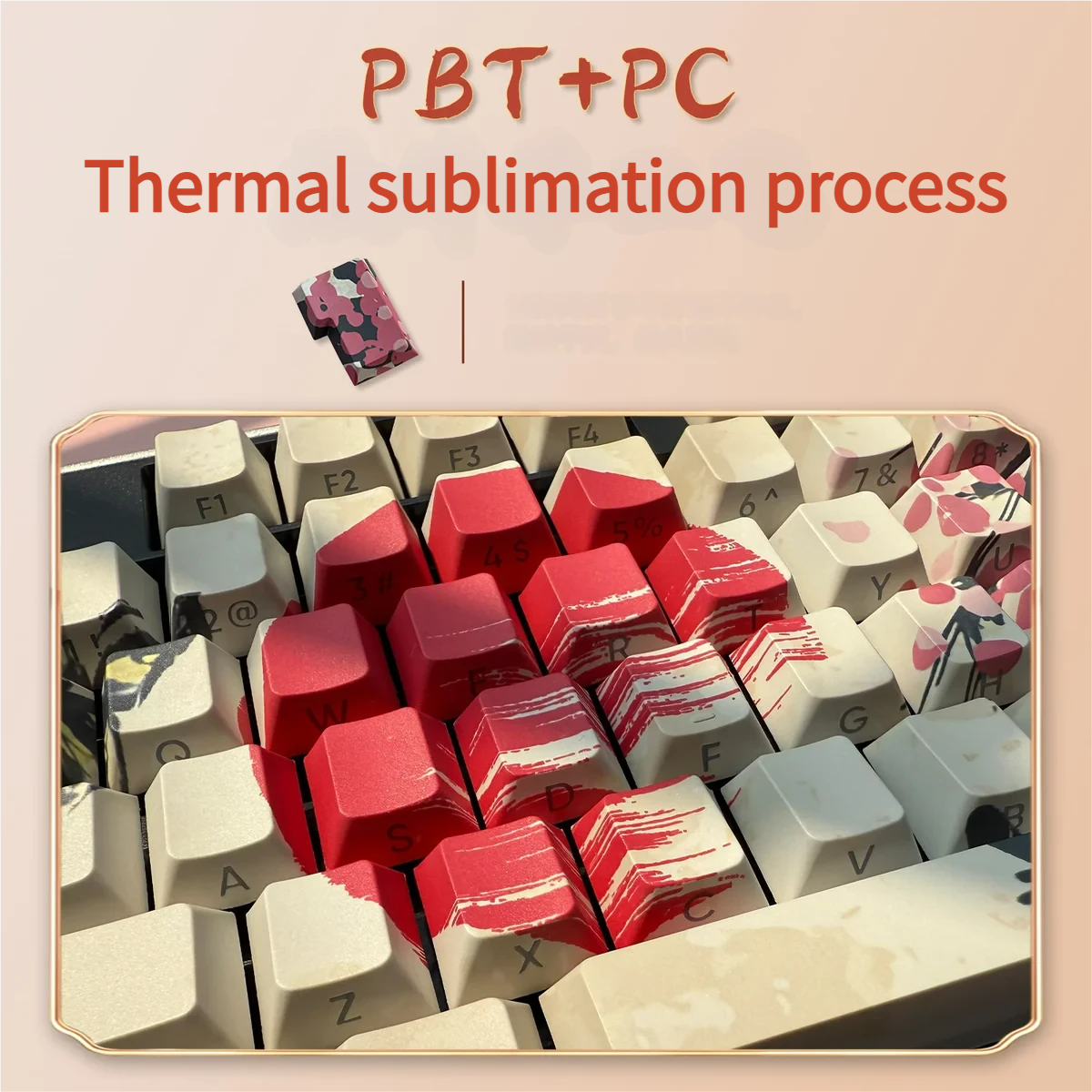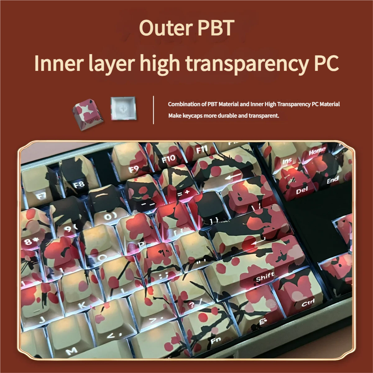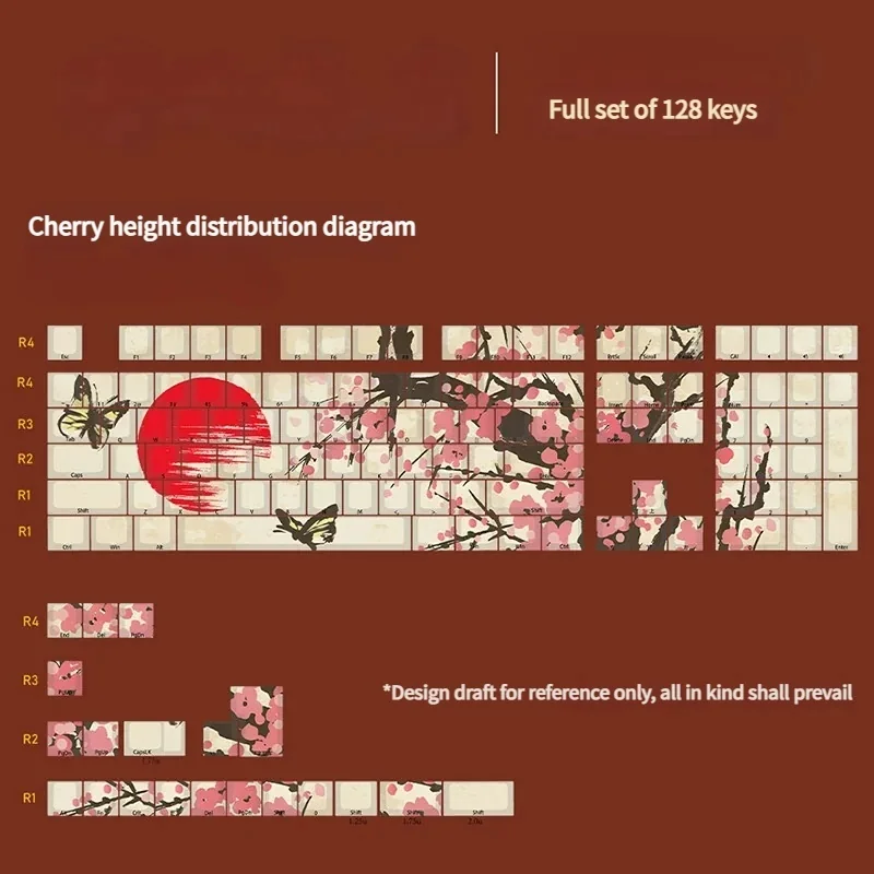 Elevate your typing experience with Plum Blossom Cherry Keycap Set, a true testament to timeless Chinese art. Each keycap in this elegant PBT Dye-Sub Keycaps set is a miniature canvas. Which showcasing the serene beauty of plum blossoms, symbols of resilience and renewal. Designed for the discerning enthusiast, these unique Side-Lit Keycaps allow your keyboard’s backlighting to beautifully illuminate the intricate side-engraved characters, creating a captivating glow. Crafted from high-quality PBT material, they offer exceptional durability and a satisfying tactile feel. Transform your mechanical keyboard into a sophisticated Chinese Art Keyboard, where every keystroke is a journey through an artistic landscape. This full 128-key set ensures broad compatibility, bringing an unparalleled touch of elegance to almost any setup. Immerse yourself in the delicate charm and artistic spirit these keycaps bring to your workspace.