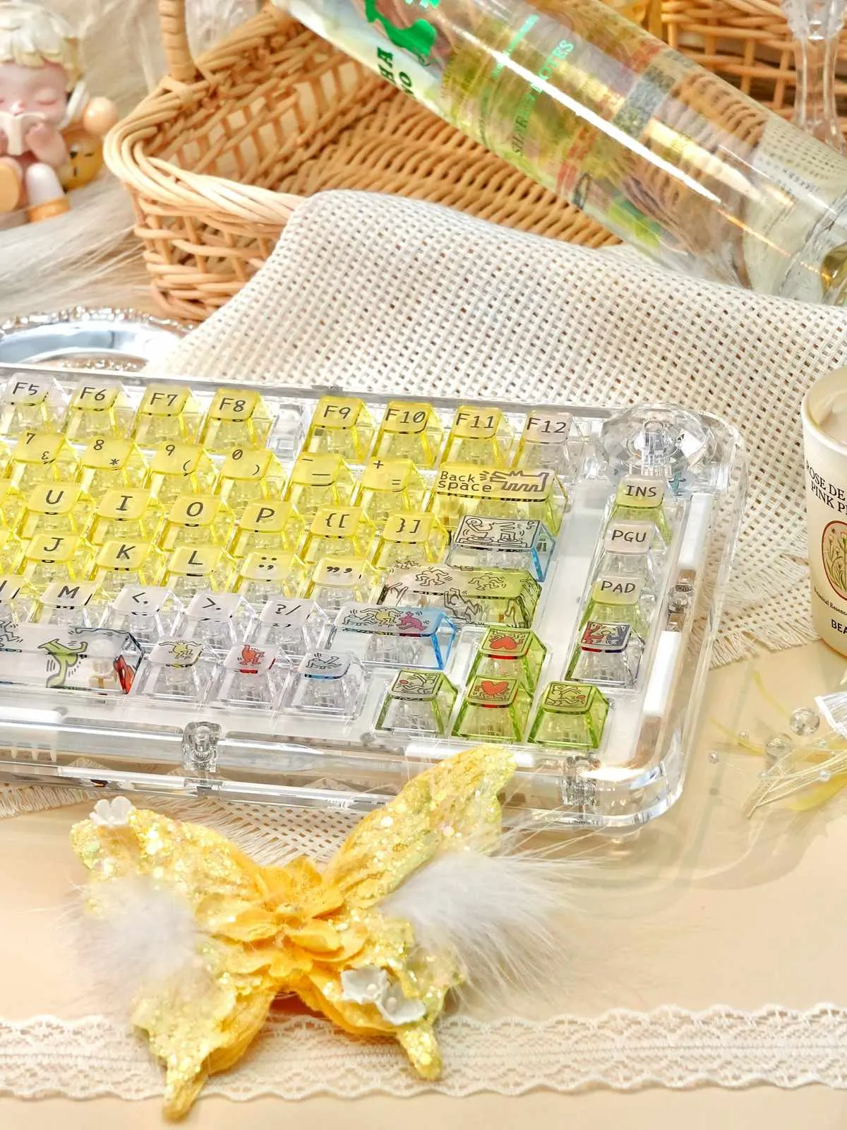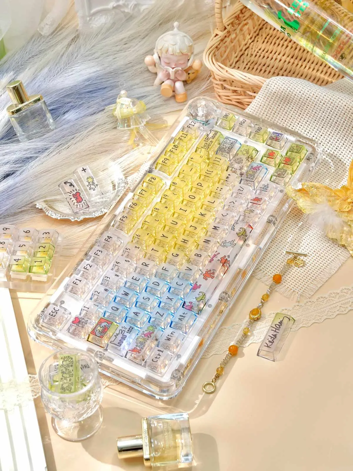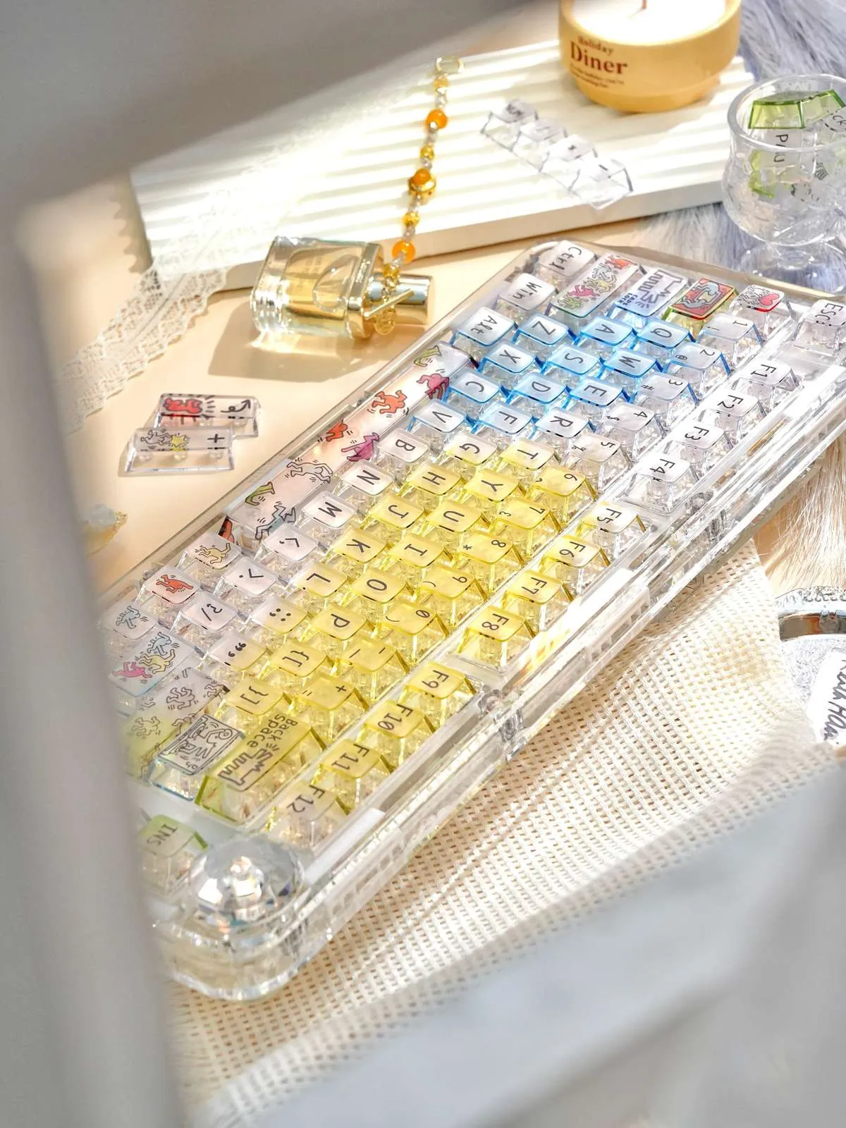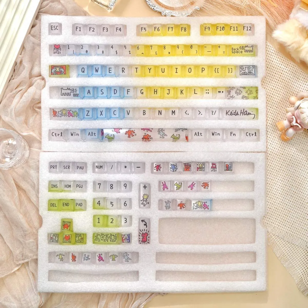 Artistic aficionados the colorful Pop Shop Art Cherry Keycap Set is the ideal way to add flair to your keyboard! This eye catching collection of translucent, blue and yellow keycaps. That adds a compelling touch to any workstation. Bold black lettering on each keycap ensures both style and visibility. The artistic icon design which features human figures in a variety of poses. Which including dancing and adds a lively mood that is what really sets this set apart. These keycaps are made for PC users and have a Cherry profile for maximum comfort. With this distinctive keycap set that you may change the way you type and add some color. With originality to your workstation!