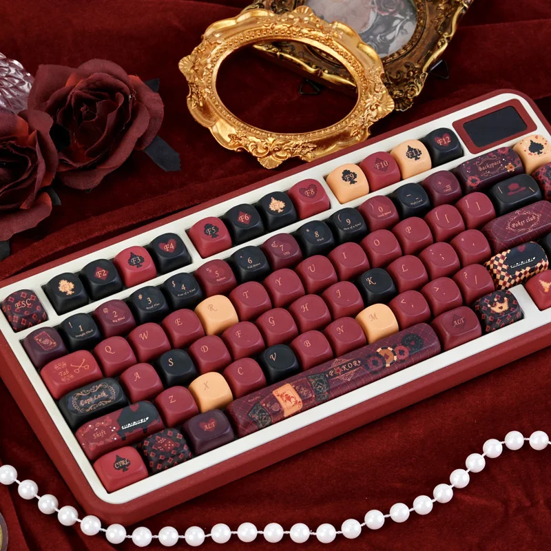 Unleash the majestic charm of Wonderland onto your desk with our Red Heart Queen MOA Keycap Set. This stunning Red Queen PBT Dye-Sub Keycap Set is designed to transform any mechanical keyboard into a captivating masterpiece, exuding an air of regal elegance. Crafted from durable PBT material, these MOA PBT Keycaps offer a unique. That comfortable typing experience with their distinctive profile and smooth, matte finish. The intricate designs, inspired by the bold red and black aesthetic and iconic card suits of the Red Heart Queen, are brought to life through advanced dye-sublimation keycap printing. Which ensuring vibrant, long-lasting legends that will never fade. Perfect for enthusiasts seeking custom mechanical keyboard keycaps or a truly unique themed keycap set. That this collection invites you to make a powerful, artistic statement with every keystroke.