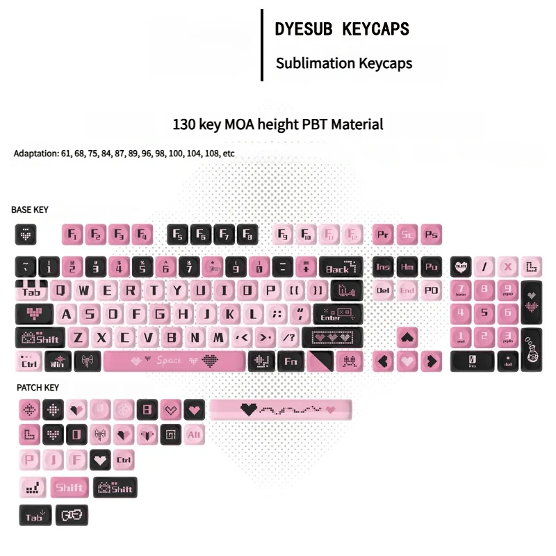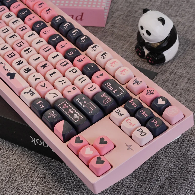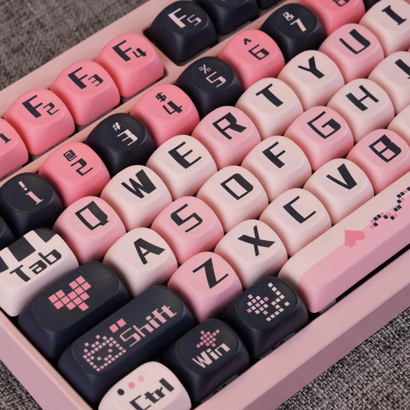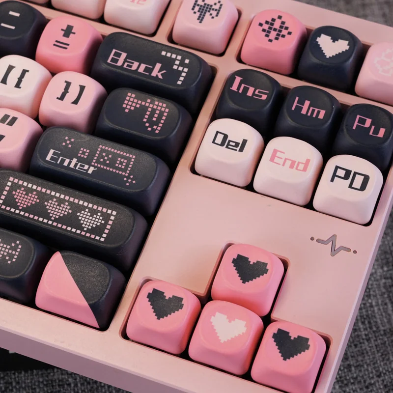 Unleash a wave of sweet affection and playful charm onto your desktop with our Sweetheart Black Pink MOA Keycap Set! Designed for those who adore a personalized keyboard experience, these keycaps transform your everyday typing into a joyful celebration of style. Each keycap boasts a delightful black and pink aesthetic, capturing a romantic theme that radiates warmth and happiness. Crafted from high-quality, durable PBT material, these dye-sub PBT keycaps are built to last, resisting shine and wear even with extensive use. The legends are crisp and vibrant, ensuring your keyboard always looks its best. Experience unparalleled typing comfort with the unique MOA profile keycaps, known for their ergonomic design that cradles your fingertips. This Black Pink keyboard set is more than just an upgrade; it’s an expression of your unique personality. Elevate your setup and infuse it with pure joy!