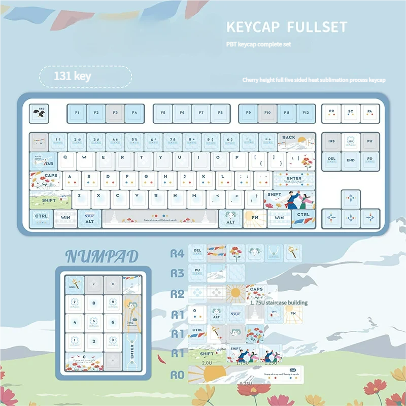 Embark on a spiritual journey with our Sacred Mountain Cherry Keycap Set, transforming your mechanical keyboard into a tranquil, aspirational landscape. This unique Dye-Sub Keycap Set features majestic mountain vistas and ethereal clouds. That evoking serene Asian-inspired spirituality and fostering profound calm for creative use. Crafted from durable PBT material, these Sacred Mountain Keycaps ensure exceptional longevity and a superior typing feel. The advanced dye-sublimation process permanently fuses the intricate nature theme keycap designs, resisting fading and wear. With their classic Cherry profile, these PBT Keycaps provide comfortable ergonomics. Compatible with most cross-axis mechanical keyboards, this set is ideal for enthusiasts seeking both aesthetic beauty and robust performance. Elevate your desk setup with a touch of serene majesty.