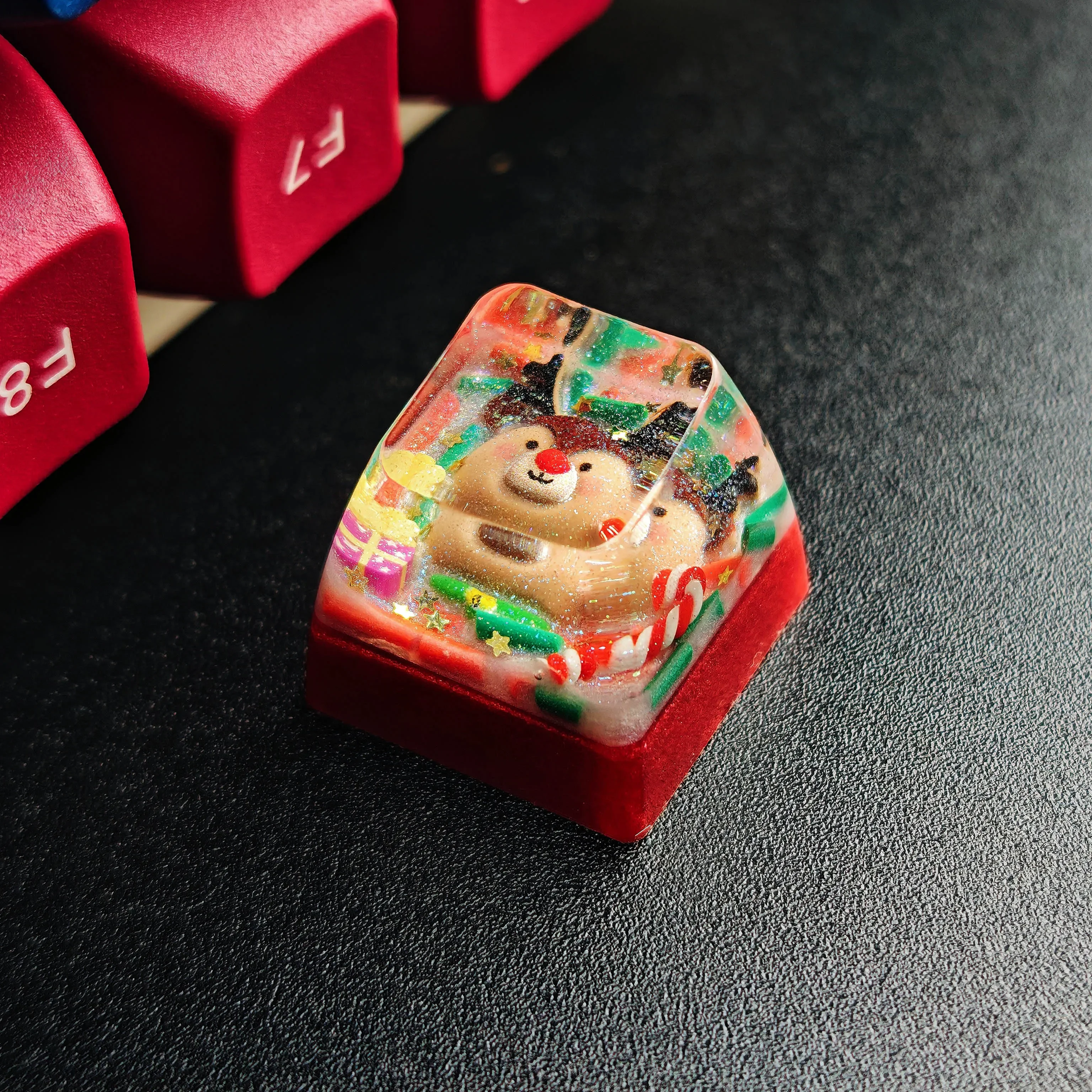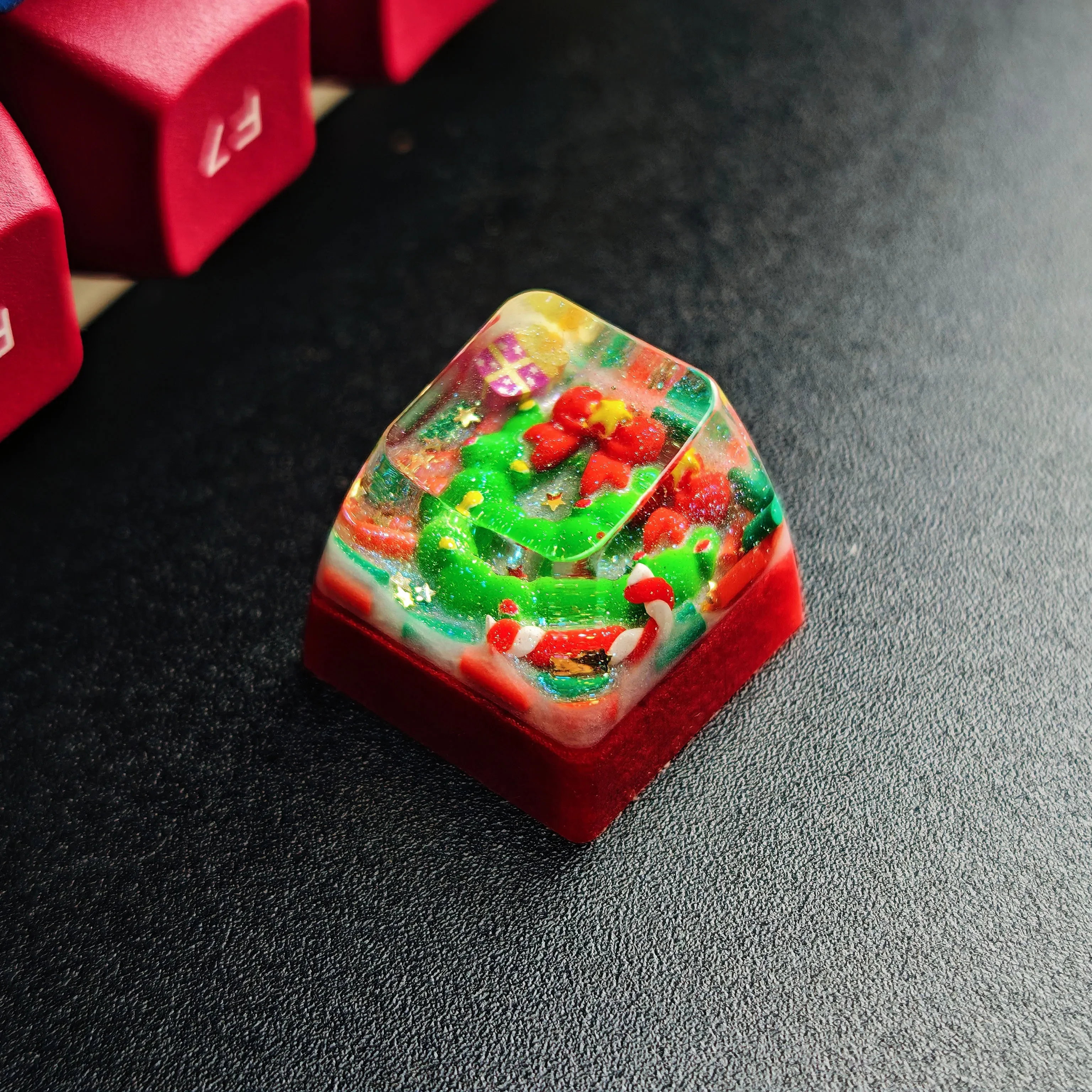 Celebrate the festive spirit with our enchanting Festive Christmas Artisan Transparent Keycap, a miniature masterpiece designed to ignite excitement on your mechanical keyboard. Each Festive Christmas Artisan Transparent Keycap is meticulously crafted, encapsulating the whimsical figure of Santa Claus within crystal-clear, vibrant resin. This isn’t just any keycap but its a tiny work of art that transforms your keyboard into a canvas of Christmas cheer and personalization. Imagine the delight as this artisan keycap adds a playful touch to your gaming or work station, reminding you of holiday magic. Its an exceptional custom keycap for those who appreciate unique accessories and wish to express their individuality. Searching for the perfect Christmas keycap or a distinctive mechanical keyboard gift? Look no further. Our Santa resin keycap is designed to be a conversation starter and a joyful addition for any keyboard enthusiast, promising a smile with every press.