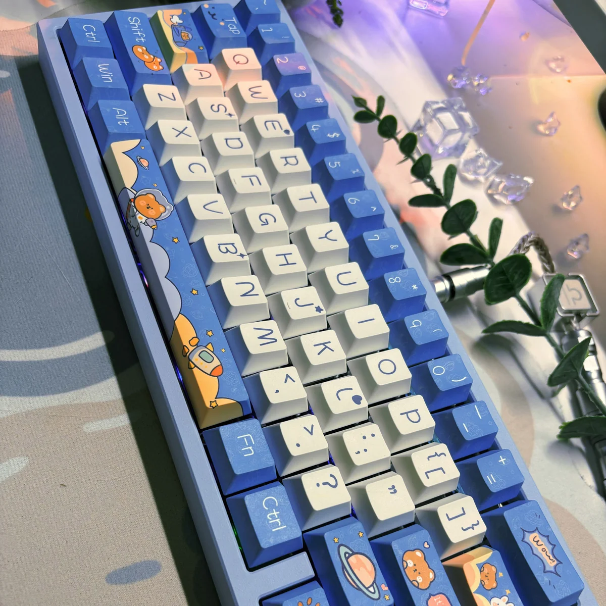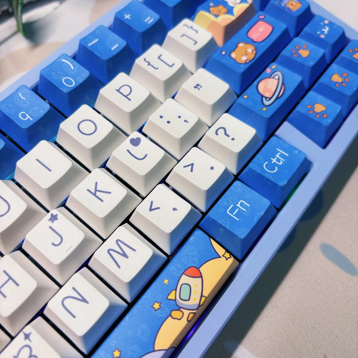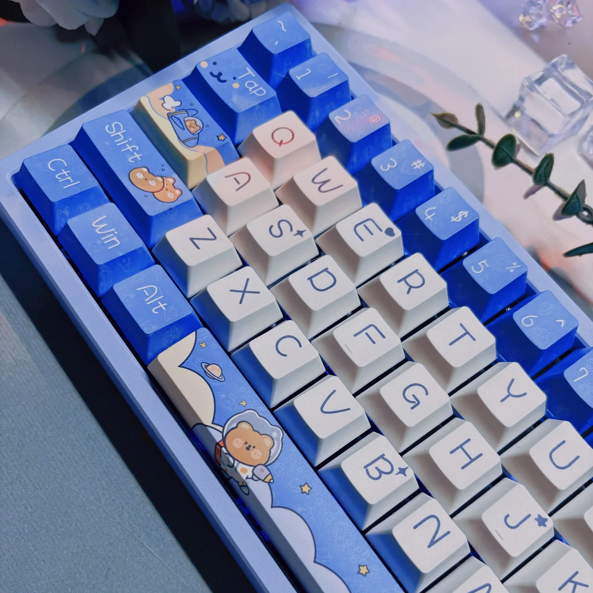 Embark on a whimsical journey into the cosmos with our Space Bear Cherry Keycap Set. Designed for the creatively inclined, these keycaps transform your keyboard into a vibrant, star-filled landscape where playful bear astronauts explore the universe. Each keycap is a testament to imagination, blending unique designs with superior quality to elevate your typing experience. Crafted from premium PBT, this 139-key PBT keycap set boasts exceptional durability and resistance to shine, ensuring your cosmic adventure lasts. The characters are brought to life through advanced dye-sublimation printing. With an ergonomic Cherry profile, these dye-sub keycaps provide a comfortable and familiar typing feel, supporting long sessions of creative work or play. Give your keyboard a unique, imaginative, and high-quality aesthetic that truly reflects your artistic spirit. Discover the universe at your fingertips.