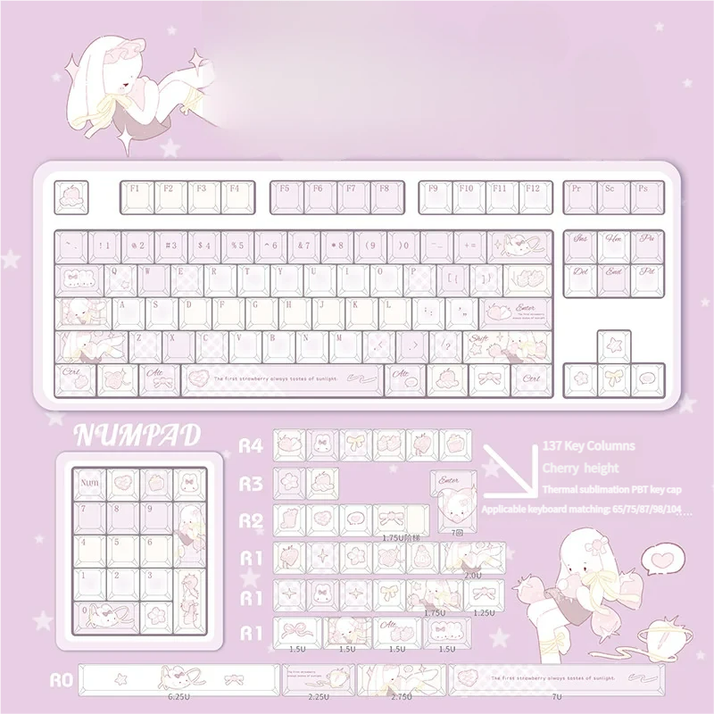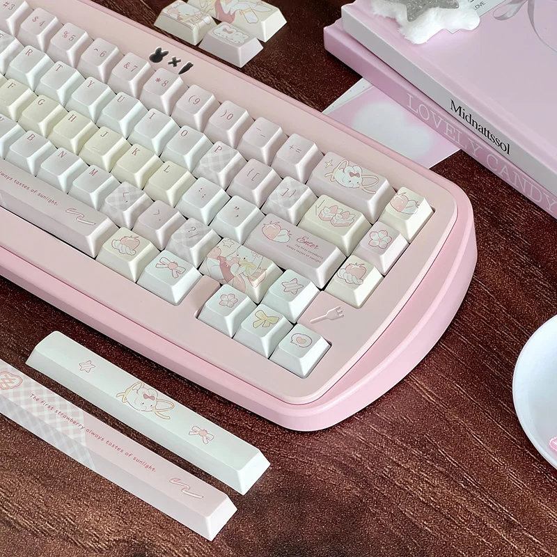 Transform your mechanical keyboard into a delightful dessert dream with our Sweet Strawberry Milkshake Cherry Keycap Set. Designed to bring pure joy to your fingertips, these keycaps boast a playful pastel pink aesthetic, reminiscent of your favorite sweet treat. Crafted from premium PBT material, each keycap offers exceptional durability and a satisfying, textured feel that enhances every keystroke. Experience vibrant, long-lasting color thanks to the advanced Dye-Sublimation Keycaps process, ensuring the adorable designs never fade. These Cute Mechanical Keycaps are not just pretty; they are built for comfort and performance, supporting an ergonomic profile for extended typing sessions. Elevate your setup with these exquisite Pink PBT Keycaps, perfect for adding a touch of whimsical charm and personalized style. Get ready to type with a smile and infuse your creative space with irresistible sweetness!