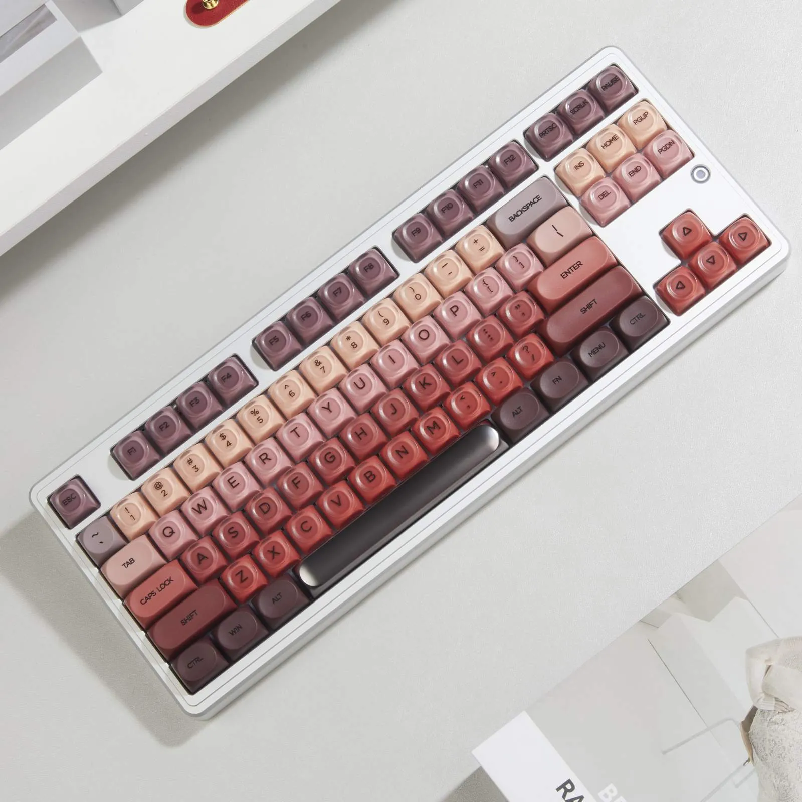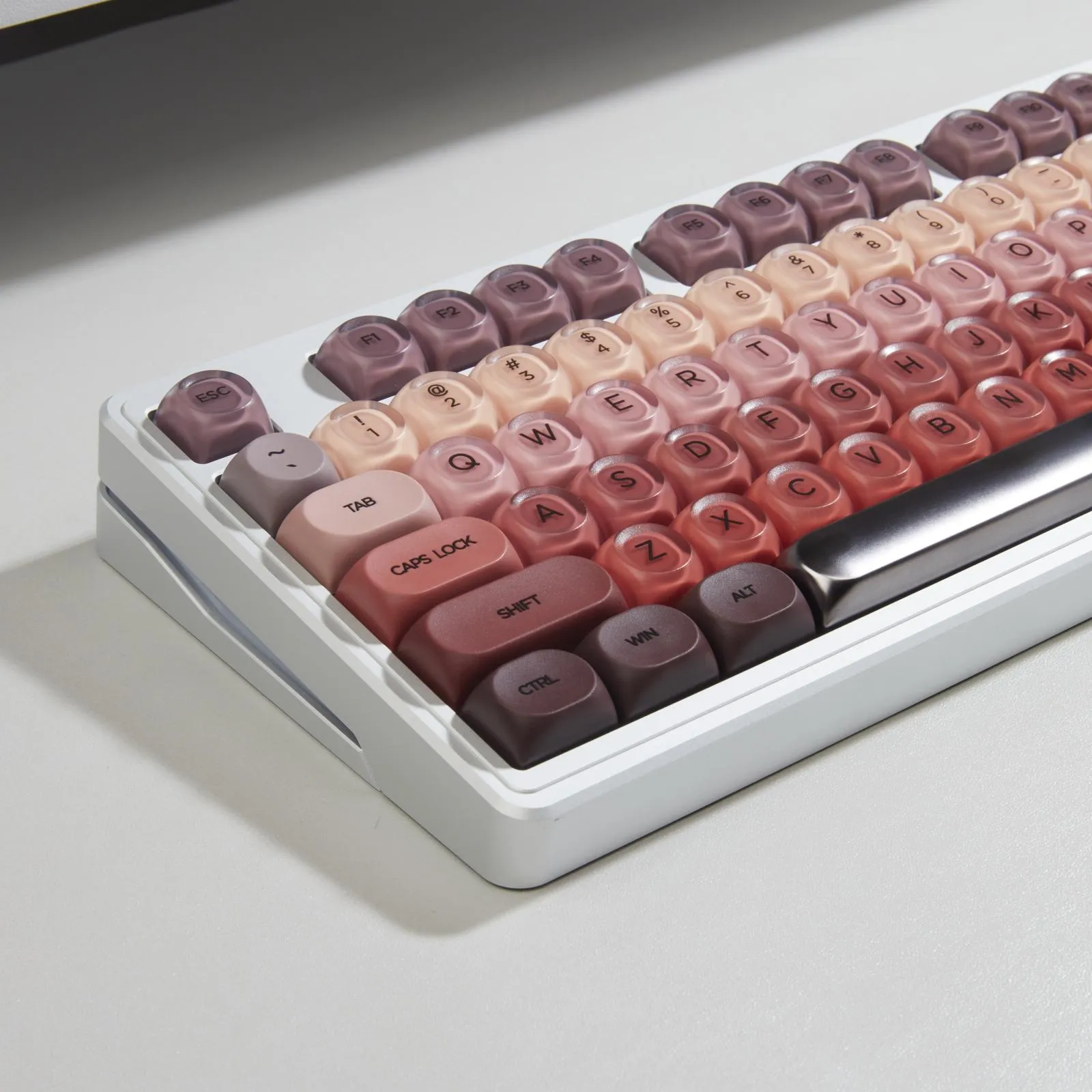 Elevate your keyboard with the Stylish Lipstick Themed MOA Keycap Set! The gorgeous mix of pink, red, brown, purple and beige keycaps in this lively collection. Which is ideal for bringing some color to your setup. Each keycap features distinctive font styles with black letters. That transforming your keyboard into a work of art as well as a useful tool. These keycaps which are made of premium PBT and PC materials. That guarantee longevity and a comfortable typing experience. Both keyboard aficionados and beauty lovers will find the lipstick theme to be entertaining and humorous. Use this elegant and fashionable keycap set to update your typing area right now!