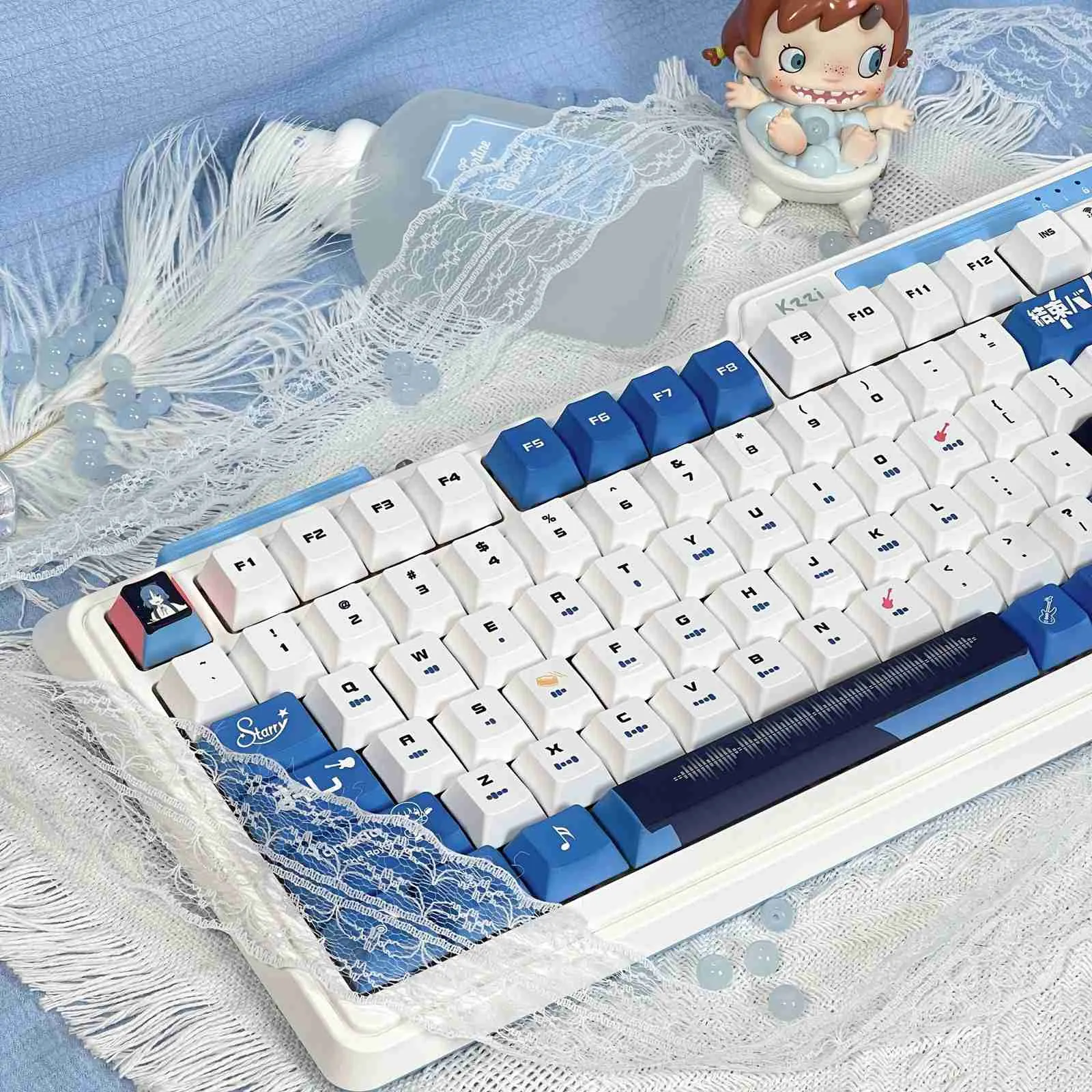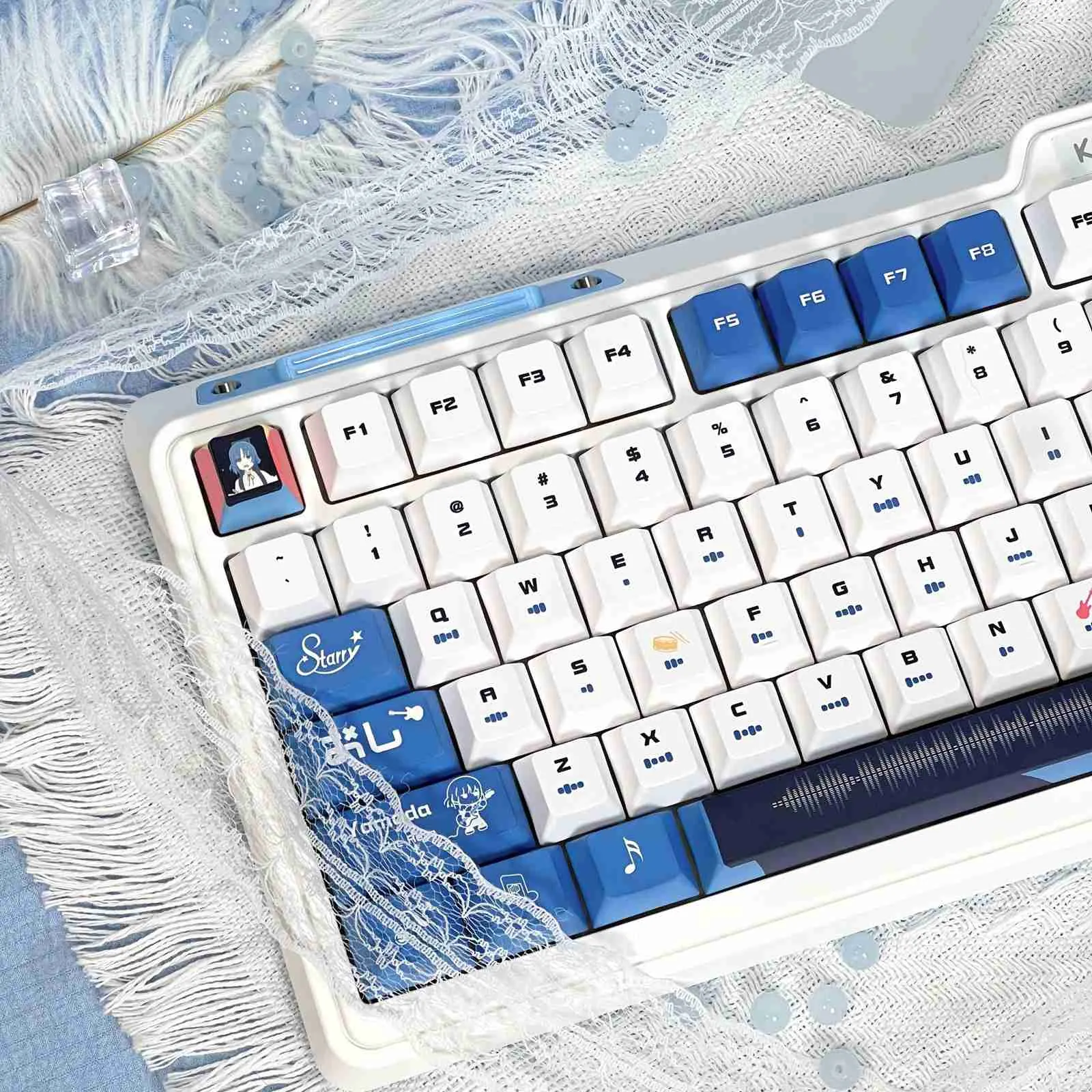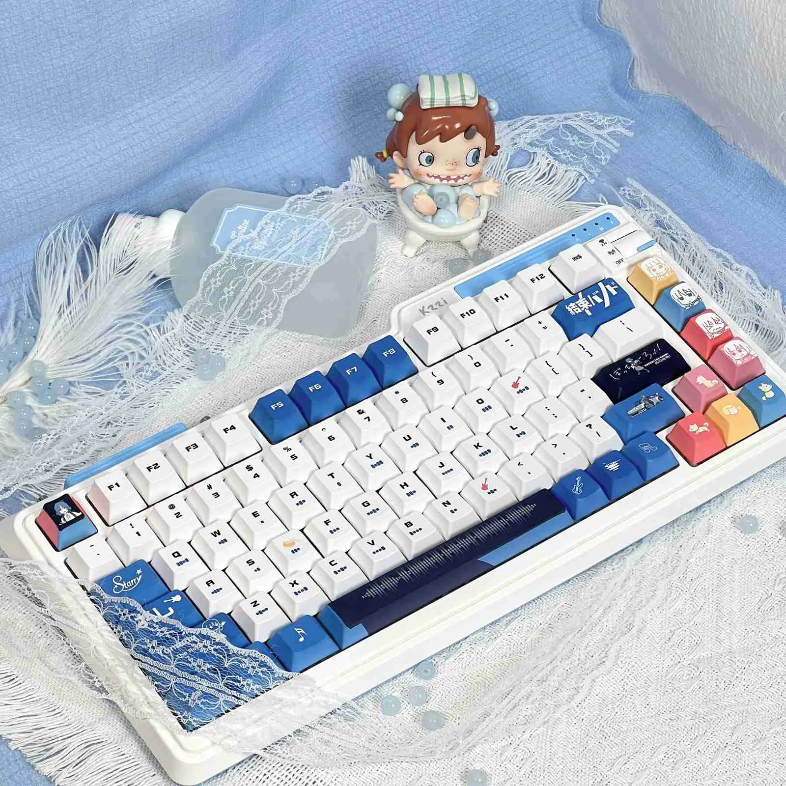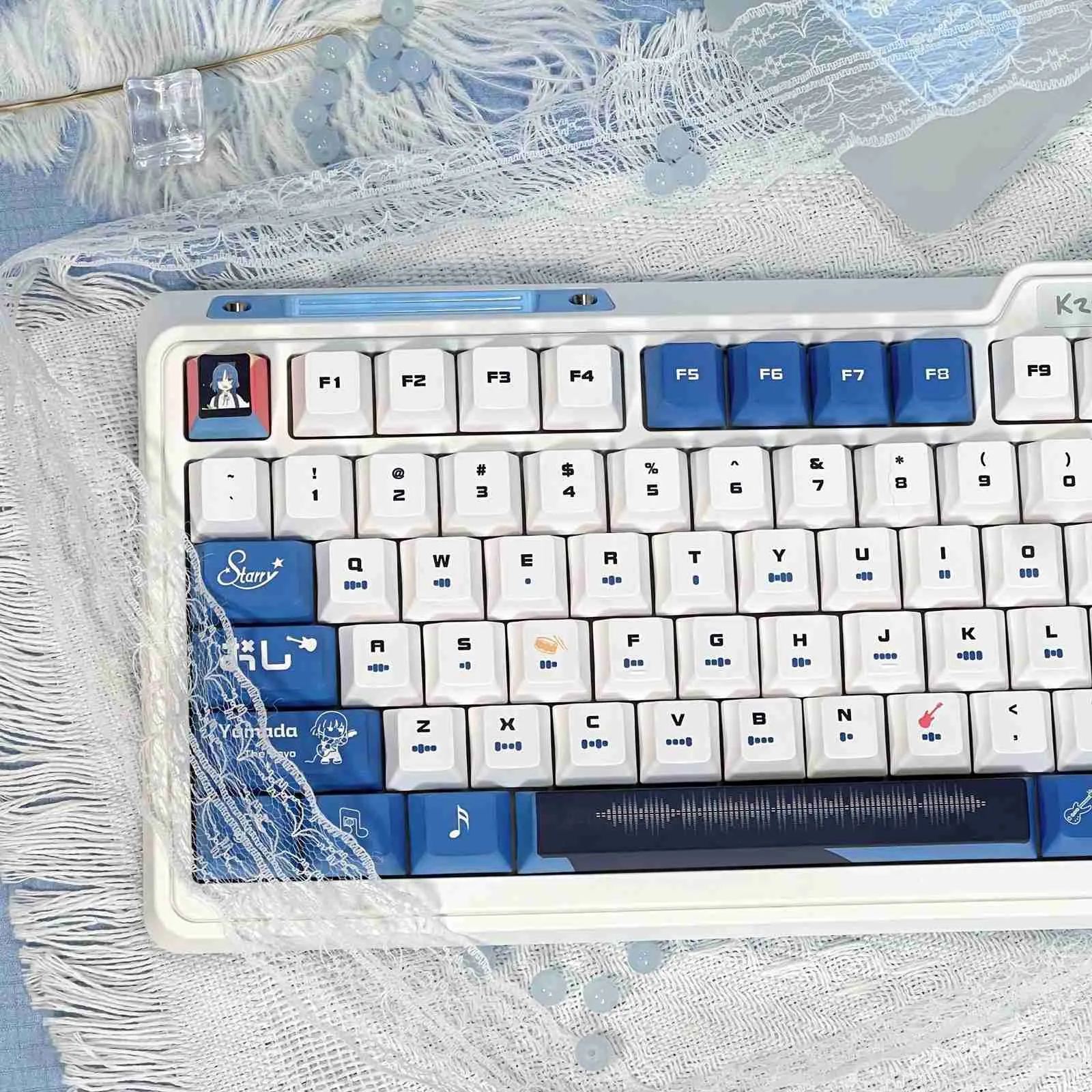 Rock your desk setup with the Bocchi the Rock!: Stylish Ryou Yamada OEM Keycap Set! This eye-catching collection combines elegant design, music-inspired inventiveness and anime charm. Sharp readability and a contemporary flair are guaranteed by its exquisite black and white typography. For added individuality, some keys such as the ESC Key that are adorned with character icons. Throughout the layout, there are musical notes and instrument motifs that provide joy and rhythm. Its ergonomic OEM profile and excellent PBT construction provide comfort and longevity. Choose from the two adaptable styles—the Light Transmission Keycap Set or the Opaque Keycap Set. Which to suit your tastes and add some anime flair to your keyboard.