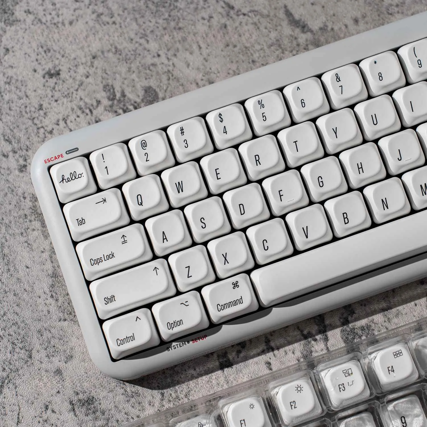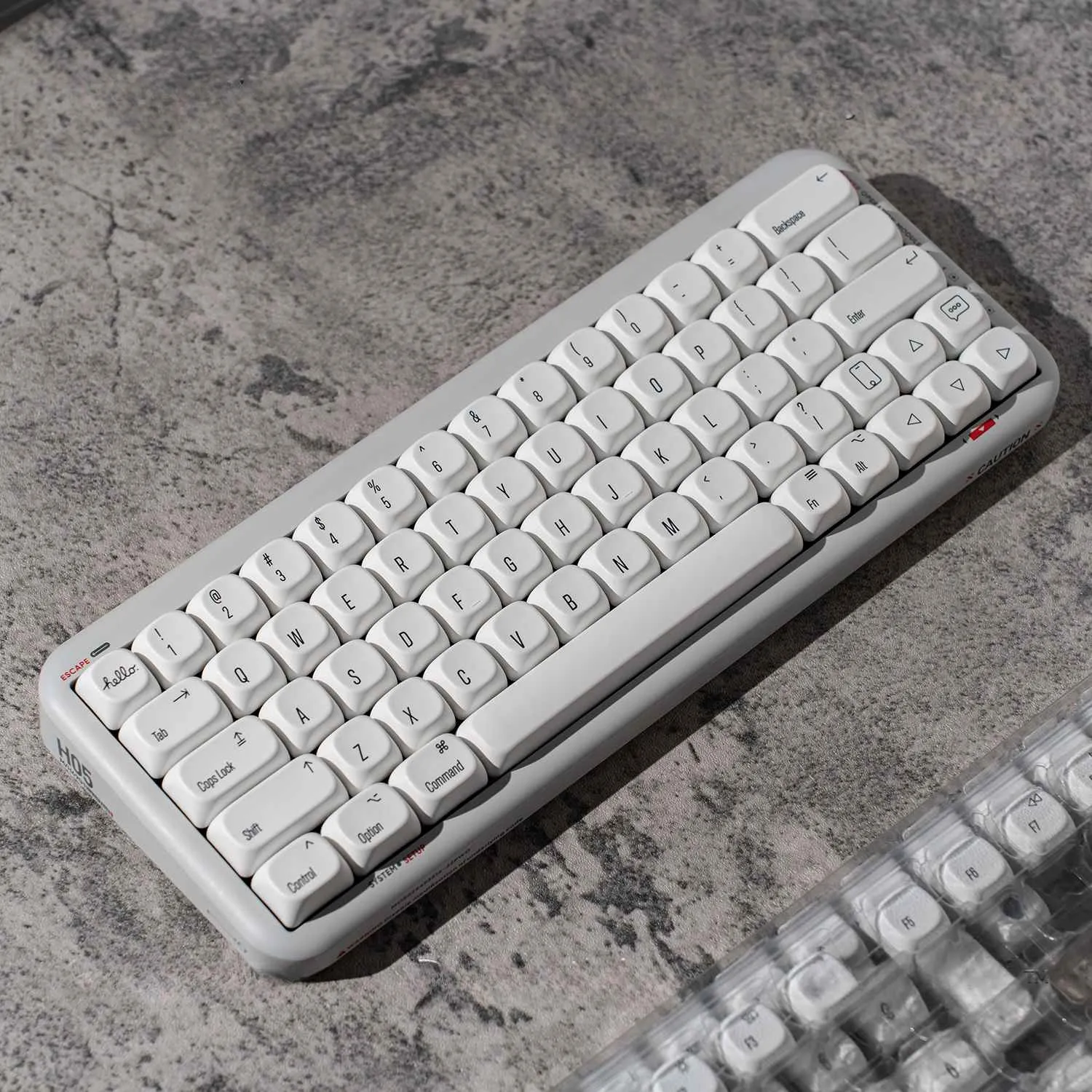 Makeover your keyboard with the elegant and simple Stylish White Minimal MO Keycap Set. This collection accommodates your preferences with two options: Keycap Set with Bag and Keycap Set with Box. Each keycap has a classic look thanks to its immaculate white polish and elegant black lettering. By prominently displaying the word “hello” on the ESC key gives your setup a welcoming feel. These keycaps which are made of sturdy PBT. That are designed to endure frequent use without losing their aesthetic appeal. They improve your typing experience with a comfortable MO profile. Which turning your keyboard into a fashionable accent piece in addition to a useful tool.