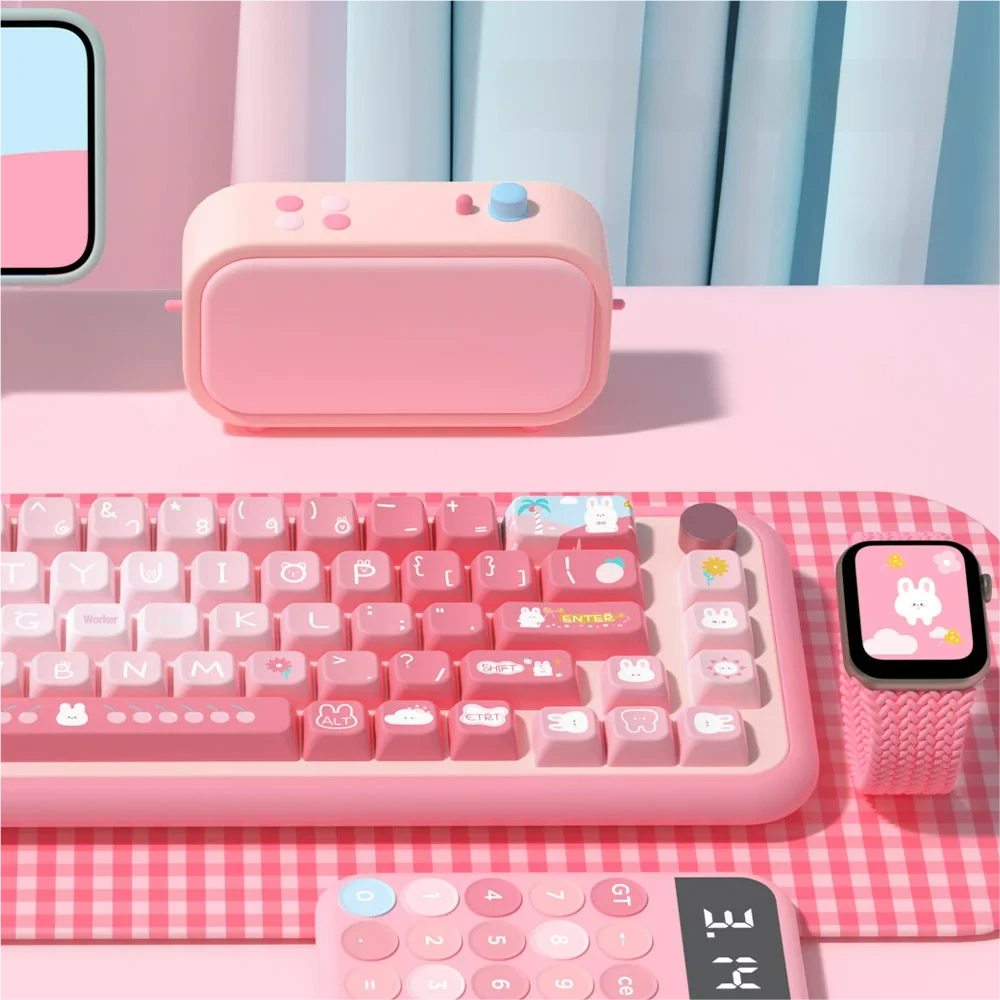Transform your keyboard into a whimsical summer escape with our Summer Rabbit Series Keycap Set. Designed to infuse your desk with a playful spirit, these adorable PBT dye-sublimated translucent keycaps are a treat for both eyes and fingertips. Each keycap features charming rabbit motifs and vibrant summer colors. That brought to life with the lasting brilliance of PBT Dye-Sublimation technology. Experience the unique feel of MDA Profile Keycaps, engineered for comfortable typing and an aesthetic appeal that stands out. The subtle translucency allows your keyboard’s backlighting to peek through, creating a magical glow that enhances the cute aesthetic. Crafted from high-quality PBT, these keycaps promise exceptional durability and a premium typing experience. Perfect for personalization, these Translucent Keycaps are an instant mood-lifter. Upgrade your setup and let the playful rabbits inspire your day.