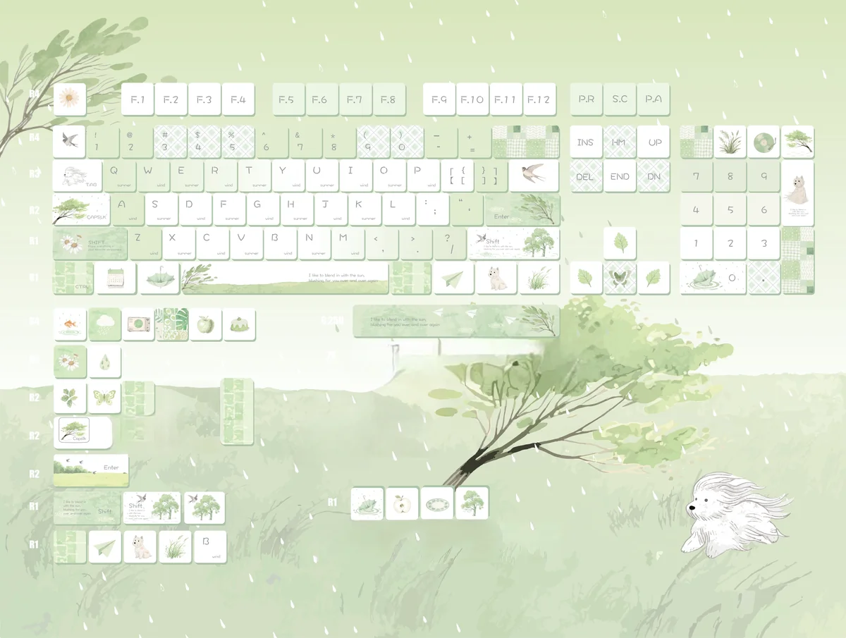 Discover true serenity with our Summer Rain Cherry Keycap Set, designed to infuse your workspace with the gentle calm of a summer drizzle. Each keycap in this premium PBT keycap set captures the ethereal beauty of soft, fluid patterns and gradients. That evoking a sense of peace and natural elegance. Crafted from high-quality PBT material, these custom keyboard keycaps offer exceptional durability and a satisfying tactile feel that resists shine over time. The legends are applied using advanced dye-sublimation keycaps technology. Which ensuring that the artistic designs remain vibrant and unfading through countless hours of use. With an Cherry profile keycaps design, this set provides a comfortable and familiar typing experience. Elevate your keyboard with the tranquil essence of Summer Rain keycaps and transform every keystroke into a moment of calm.