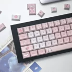 Presenting the adorable KCA Keycap Set for Sweet Rabbit Afternoon Tea! This adorable set of keycaps has a pretty pink and white combo that looks great with any keyboard configuration. Each keycap which is adorned with a cute white rabbit image that gives your typing experience a humorous touch. The ESC key stands out due to its attractive strawberry Swiss roll design while the directional keys offer a cute strawberry symbol design. These keycaps are made of sturdy PBT which guarantees a high-end feel and long-lasting quality that making them ideal for lovers of adorable design. Upgrade your workstation with this charming set and enjoy a delightful dash of personality!