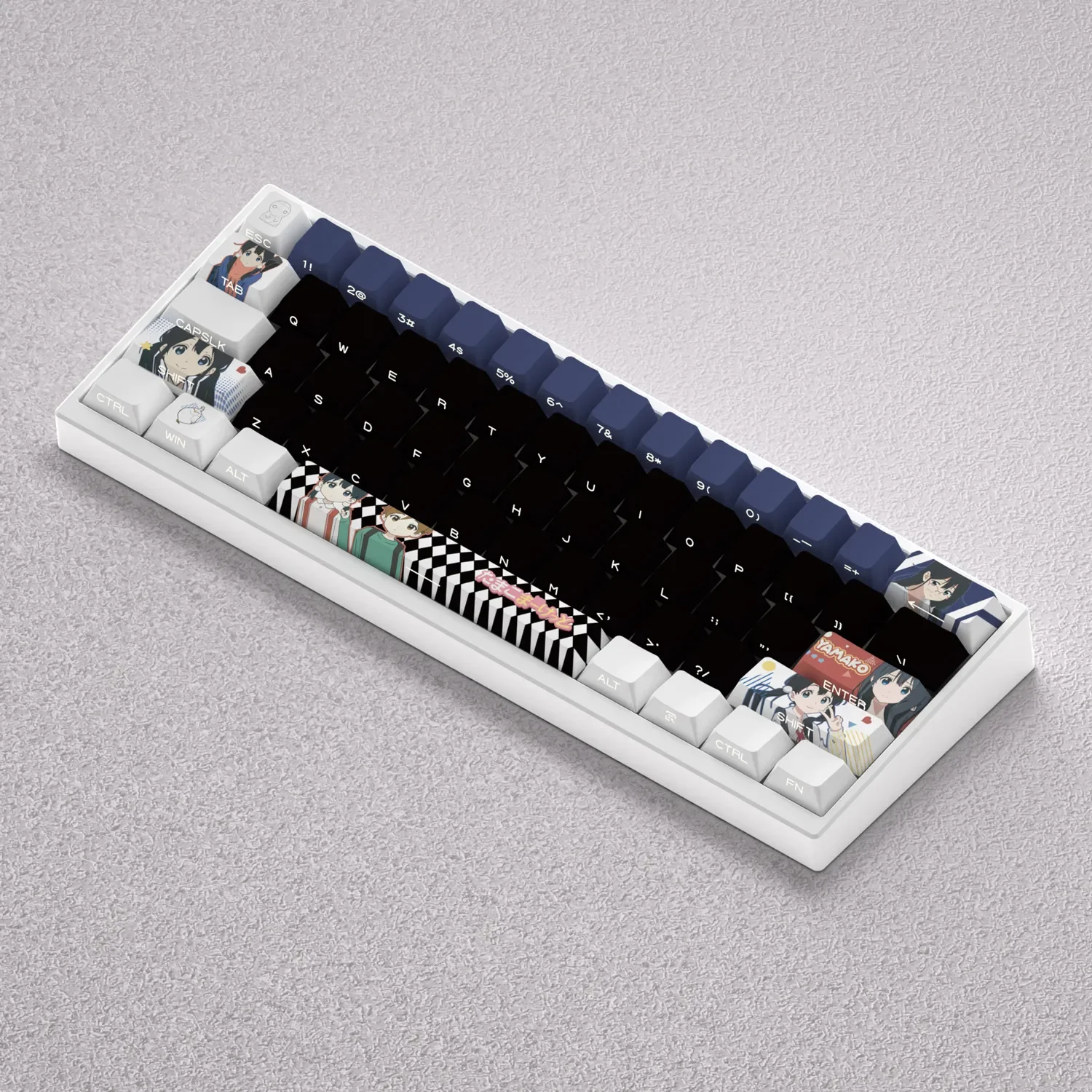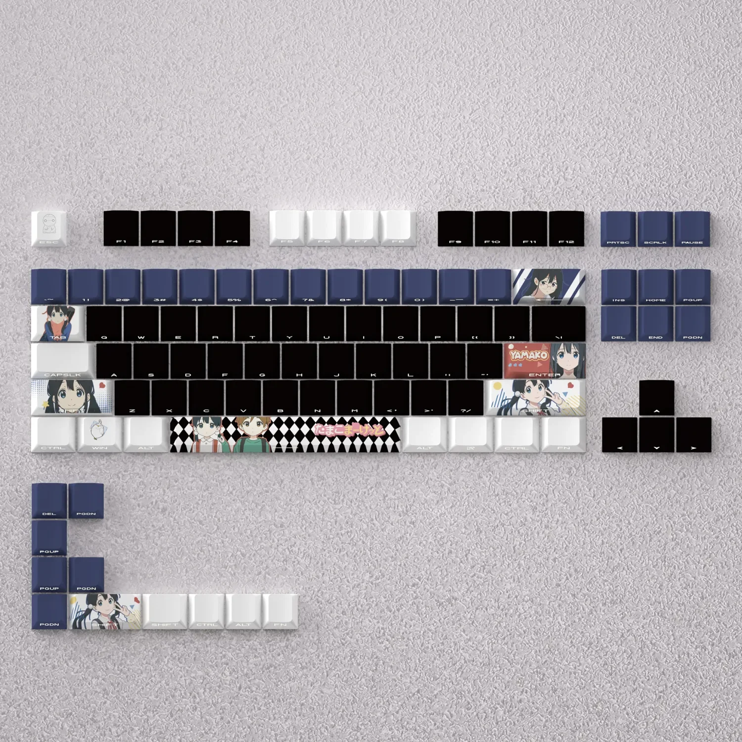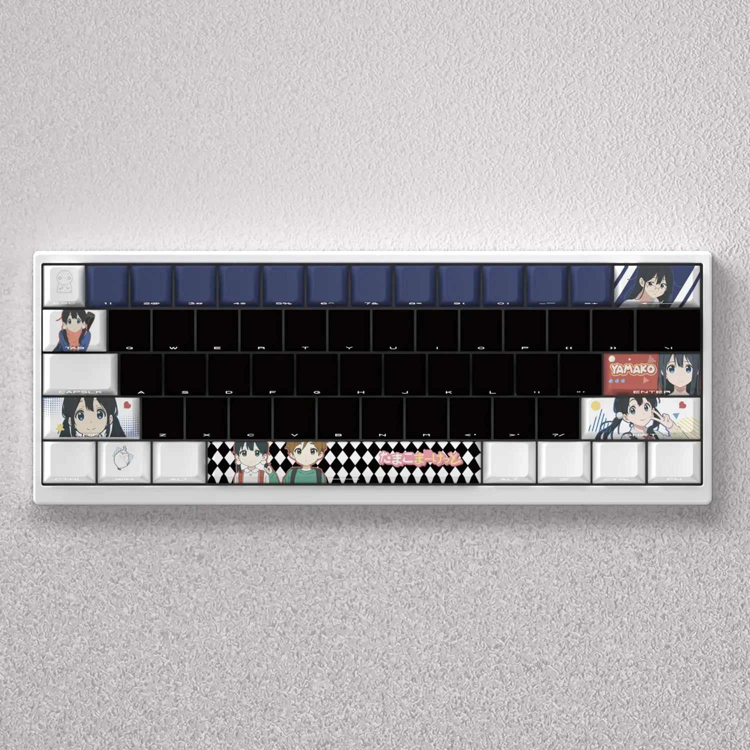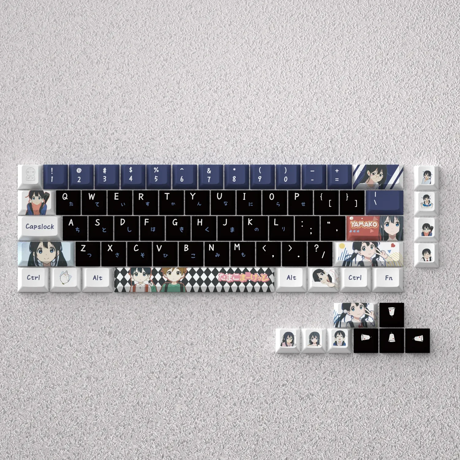 Step into the heartwarming world of Tamako Market with our exclusive Tamako Kitashirakawa Cherry Keycap Set, designed to bring a touch of cherished nostalgia to your desk. This premium Anime Keycap Set features adorable Kitashirakawa Tamako, capturing the vibrant spirit of the beloved series. Each keycap is meticulously crafted using PBT dye-sublimation, ensuring exceptional durability and colors that resist fading even with prolonged use. Transform your typing experience with a Custom Mechanical Keycap set that celebrates your passion. Perfect for fans seeking Kawaii Keyboard Accessories, these Tamako Keycaps offer a playful yet high-quality upgrade. Specifically designed for 60% keyboard layouts, they promise a perfect fit and a delightful aesthetic. Relive your favorite moments every time you type, making your keyboard a unique piece of anime art and a constant source of joy.