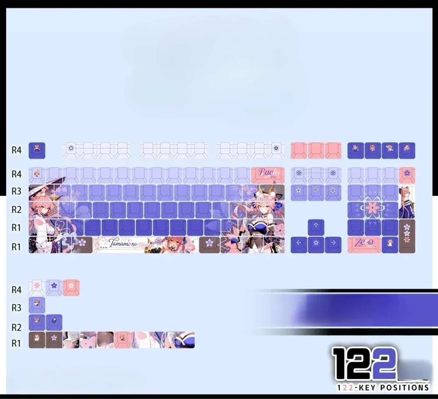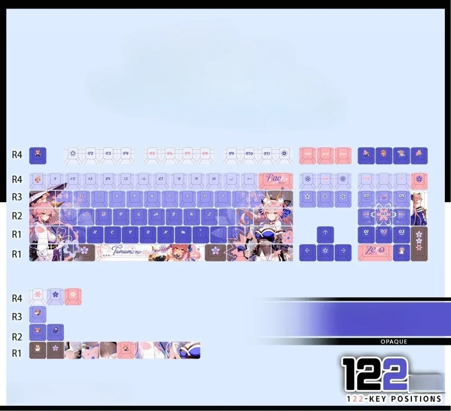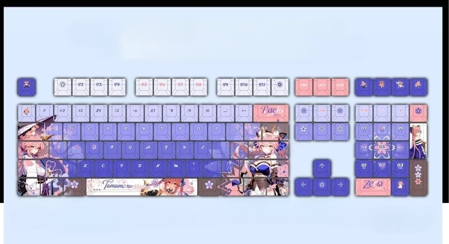 Dive into the magical world of Fate/Grand Order with our exclusive Tamamo-no-Mae Cherry Keycap Set. Infuse your keyboard with the vibrant spirit of this beloved character, transforming your setup into a true masterpiece of anime mechanical keycaps art. Crafted from high-quality PBT, these custom gaming keycaps offer exceptional durability and a satisfying tactile feel that elevates every press. The unique PBT shine-through keycaps feature luminous legends that allow your keyboards backlighting to brilliantly illuminate Tamamo-no-Mae’s mystical charm and FGO motifs. Whether you are battling foes in-game, creating content, or simply showcasing your passion, this full 122-key Fate Grand Order keycaps set is perfect for gaming, collection, and deep personalization. Embrace the nostalgia and excitement of your favorite servant every time you type, making your keyboard truly your own.