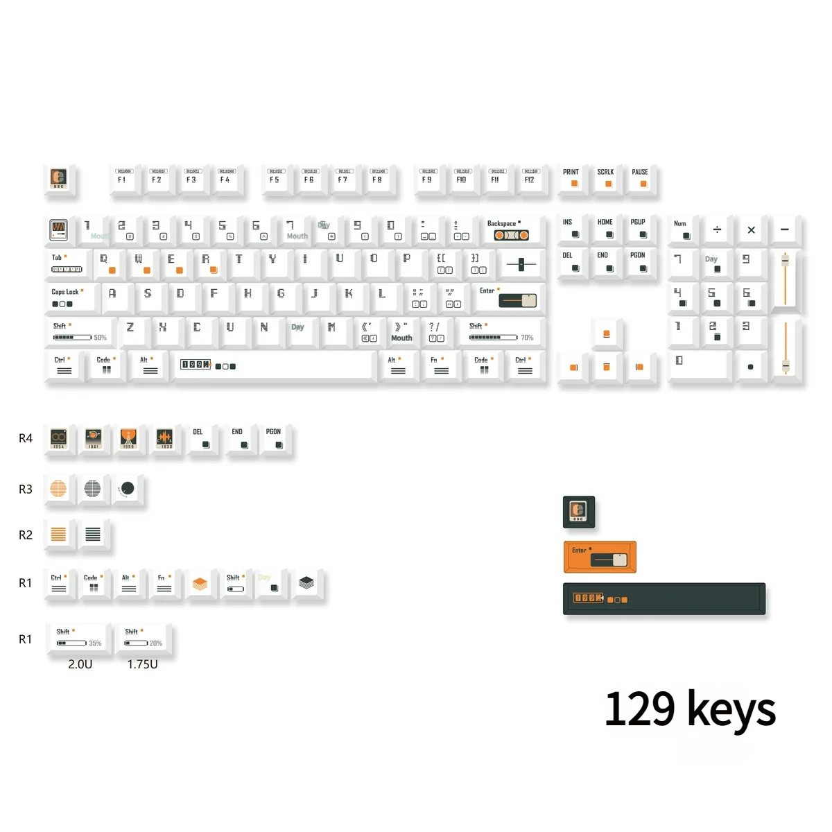 Available in 126-key and 129-key sets, compatible with 99% of mechanical keyboards on the market.