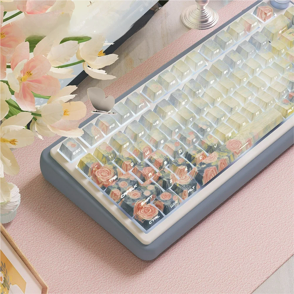 Transform your workspace into a haven of tranquility with the Twilight Song Cherry Keycap Set. Designed to capture the ethereal beauty of twilight, this collection evokes a calming, artistic presence on your keyboard. Each keycap is meticulously crafted from high-quality PBT material, ensuring exceptional durability and a premium feel that withstands daily use. The legends are applied using an advanced dye-sublimation process, guaranteeing vibrant, fade-resistant characters that will never wear off. Experience ergonomic comfort with the classic Cherry Profile Keycaps, providing a familiar and satisfying typing experience. The minimalist aesthetic is further enhanced by the unique Side Print Keycaps. This innovative design creates an incredibly clean and uncluttered top surface, perfectly complementing the tranquil sunset hues. Elevate your creative space and infuse every keystroke with serene beauty and artistic elegance.