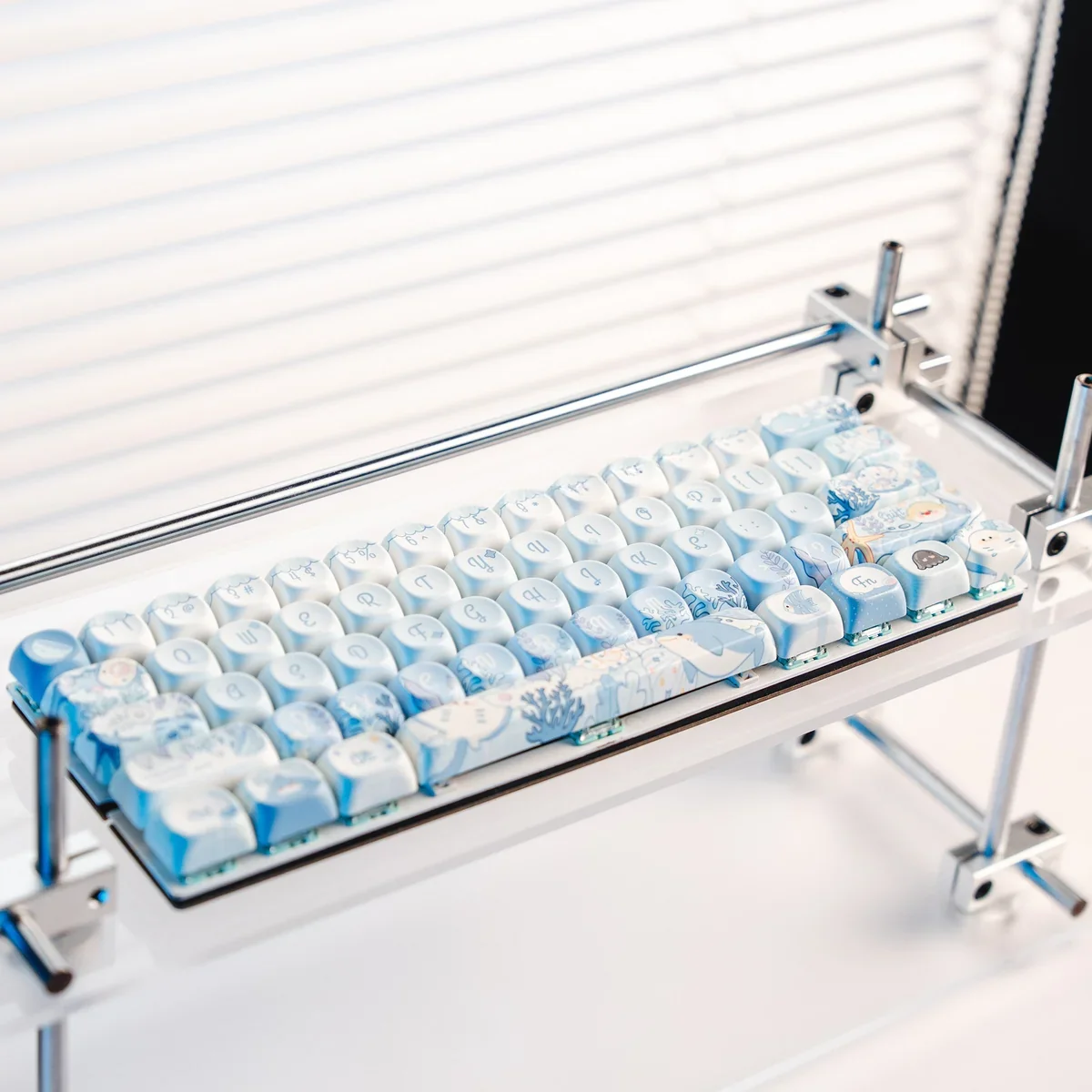 Dive into tranquility with our Underwater MOA Keycap Set, transforming your mechanical keyboard into a serene oceanic escape. Each keycap is a masterpiece of calming blue depths, featuring vibrant hues and intricate marine life, reminiscent of coral reefs and the deep ocean. This exquisite ocean keycap set brings an artistic touch to your desk, fostering a sense of serenity with every keystroke. Crafted from durable PBT material using advanced dye-sublimation, the legends will never fade, ensuring your underwater world keycaps remain pristine. The unique MOA profile keycaps are ergonomically designed for comfortable, extended typing sessions, providing a satisfying tactile experience. With 132 blue mechanical keyboard keycaps, this set offers broad compatibility for various layouts, inviting you to create a truly personalized and calming workspace. Elevate your setup with these stunning underwater keycaps and let the tranquil ocean inspire your creativity.