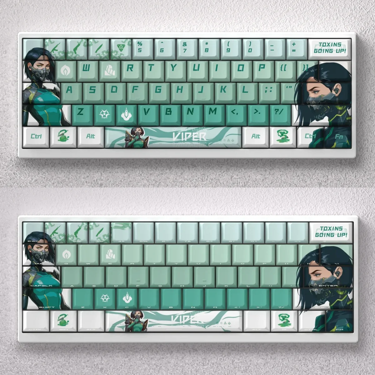 Step onto the battlefield with unparalleled style and precision. These Valorant: Viper Cherry Keycap Set embody tactical flair and venomous design, perfect for any devoted agent. Crafted with durable PBT Dye-Sub technology, each keycap features vibrant, fade-resistant legends and a distinctive characters motif that brings the sleek Valorant Viper aesthetic to life. Experience superior feel and lasting quality, essential for intense gaming sessions. This premium keycap set is meticulously designed for a dynamic gaming experience, ensuring every keystroke feels responsive and impactful. Elevate your setup and show your allegiance with a keycap set that doesn’t just look good but is built for victory. Compatible with most 60% Keyboard Keycaps, 65%, and 68% layouts, these keycaps are your ultimate upgrade for a Gaming Mechanical Keyboard, inspiring excitement and focus with every match.