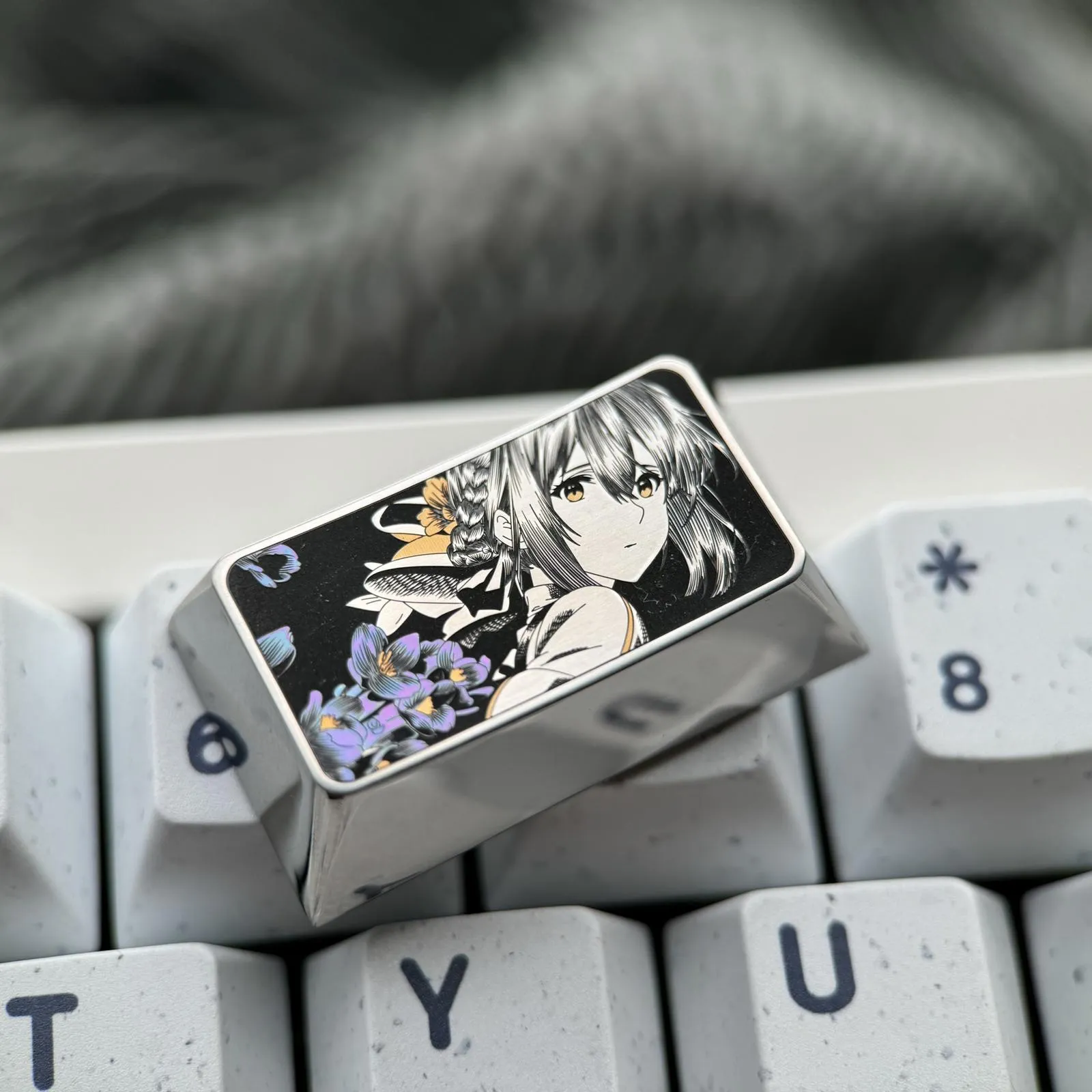 Personalize your keyboard with the gorgeous Violet Evergarden: Violet Caps Key Keycap! This distinctive keycap has a sleek black background with an eye-catching character icon design. It gives your setup a dash of beauty and charm with its lovely purple flower emblem. For any keyboard aficionado, it is a unique piece because of the 3D design. Which improves the visual attractiveness. This keycap which is made of high-quality titanium material. That guarantees lifespan and durability while offering both style and use. This keycap is ideal for Violet Evergarden fans because it not only makes typing more enjoyable. But also shows off your appreciation for beautiful art and design!