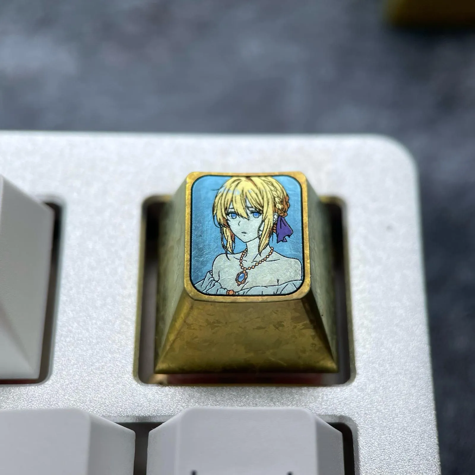 Check out with the Violet Evergarden: Violet Series Keycaps to upgrade your keyboard! Each keycap has an eye-catching character icon design and comes in four gorgeous versions. Which including Version 1, Version 2, Version 3 and Version 5. Each option is genuinely unique due to the elegant touch added by the gold-yellow hair pattern. While the character in Version 1 is wearing a lovely necklace. While Version 5 has a delightful blush design. These keycaps crafted by sturdy titanium alloy which guarantees longevity and a high end feel. The Violet Series Keycaps are ideal for fans who wish to show off their passion for Violet Evergarden. Because of its eye catching 3D design. Upgrade your keyboard right now!