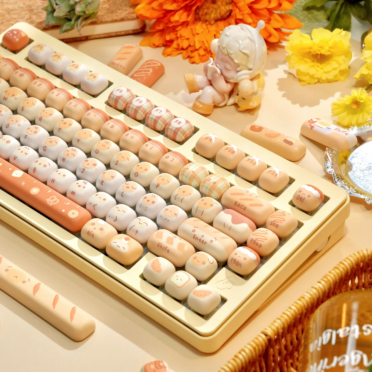 Unleash playful charm on your desk with the Mantou Keycap Set, featuring a rounded “Mantou” profile that not only looks adorable but also provides a soft, ergonomic typing experience; moreover, the MOG profile gently supports your fingertips to reduce strain during long sessions. In addition, the dye-sublimated legends ensure vibrant, fade-resistant pastel designs without relying on backlighting, so you get both durability and style. Ultimately, this set is perfect for anyone who loves cute, comfortable, and uniquely styled keyboards, bringing elegance, personality, and fun to every keystroke.