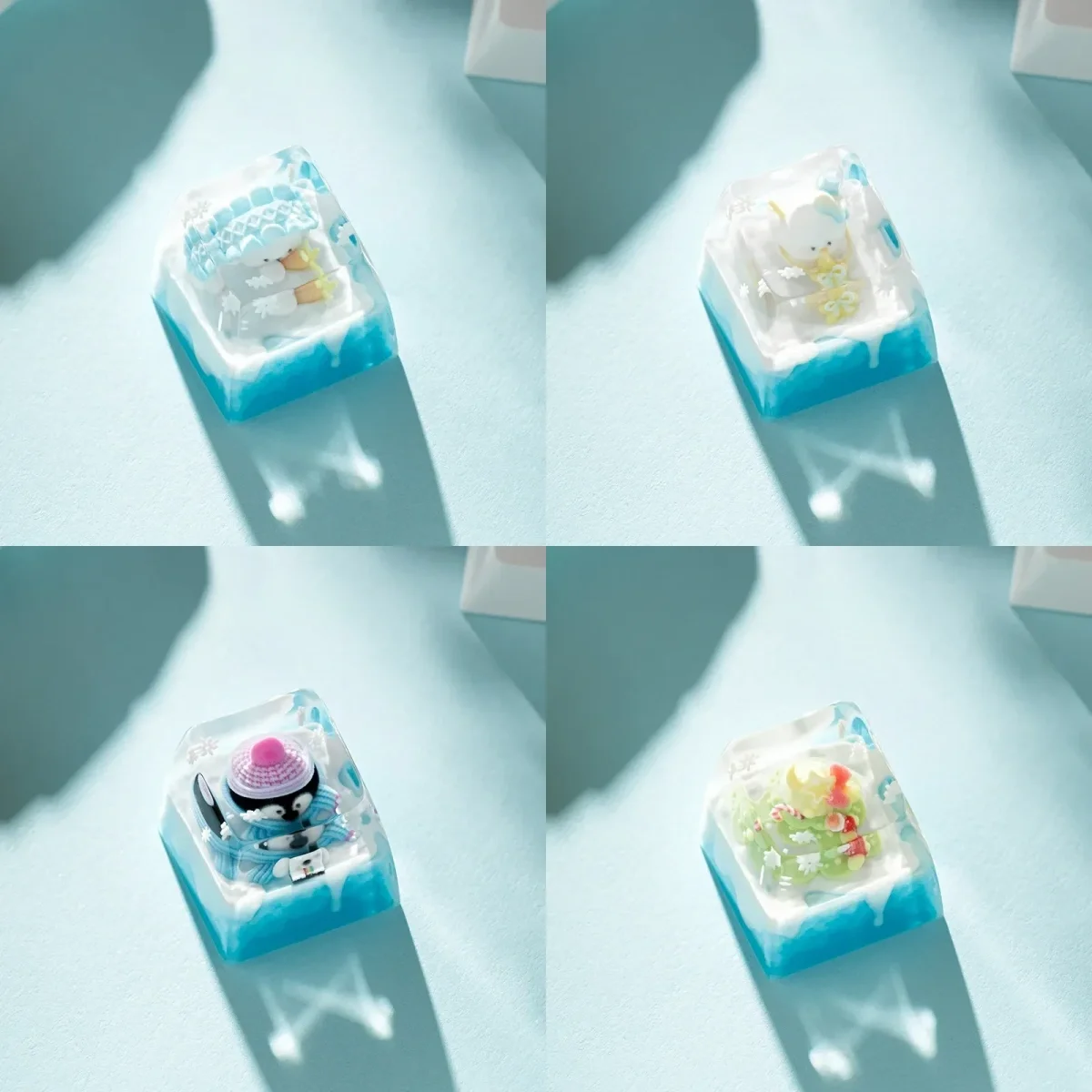 Embark on a whimsical journey every time you type with our enchanting Whimsical Miniature Ice World Transparent Keycaps. Meticulously handcrafted from high-quality transparent resin, this artisan keycap encapsulates a charming miniature ice world, featuring an adorable cartoon penguin amidst snowy landscapes. Its more than just a keycap; its a tiny, captivating diorama designed to infuse your keyboard with a unique sense of wonder and delight. Perfect for adding a personalized, artistic touch to any mechanical keyboard, this cute penguin keyboard accessory is a true conversation starter. The playful spirit of an ice and snow adventure is brought to life, making every press feel like a moment of escape. Elevate your creative space and let this snowy keycap express your unique style. Its an ideal gift for keyboard enthusiasts, collectors of unique accessories, or anyone looking to add a touch of handcrafted magic to their daily tech.
