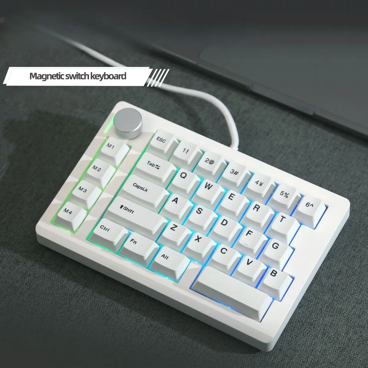 Enhance your gaming experience with the White HE33 One-Handed Minimal Magnetic Switch Keyboard. The immaculate white keycaps on this stylish keyboard give it a crisp and contemporary look. Easy readability and a fashionable touch are guaranteed by the striking contrast between the black text. The keycaps are made of sturdy ABS material. Which are intended to endure frequent use without losing their immaculate appearance. All necessary keys are easily accessible thanks to the small and one-handed design. Which is ideal for multitaskers and gamers alike. You may type with ease and responsiveness thanks to its magnetic switch technology. This keyboard is perfect for on-the-go use. Because it is lightweight and portable without compromising performance!