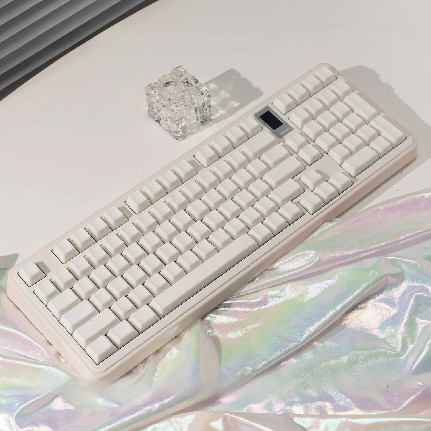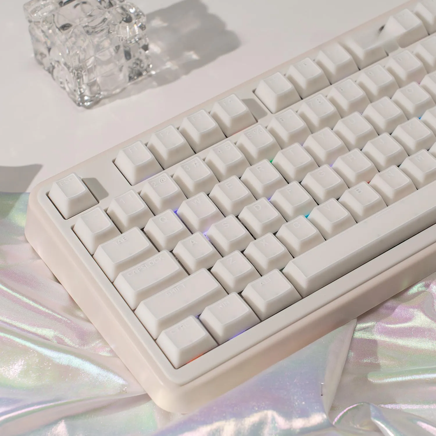 Change the look of your typing with the sophisticated White Jade Cherry Minimal Keycap Set! Perfect for a clean mechanical keyboard style. Which this gorgeous set includes complete white keycaps with subtle outline designs and sharp white text. The EGG65 Keyboard with the sensitive Snow Step Switch or the slick Yingluo Switch is one of five available alternatives. Choose the OMO100 Keyboard instead which has the same switch options. Some keycaps even feature icons for humorous expressions. Which gives your system a distinctive look. This keycap set which is made of sturdy ABS and PC materials. That has a traditional Cherry profile which perfectly combines outstanding utility and design!