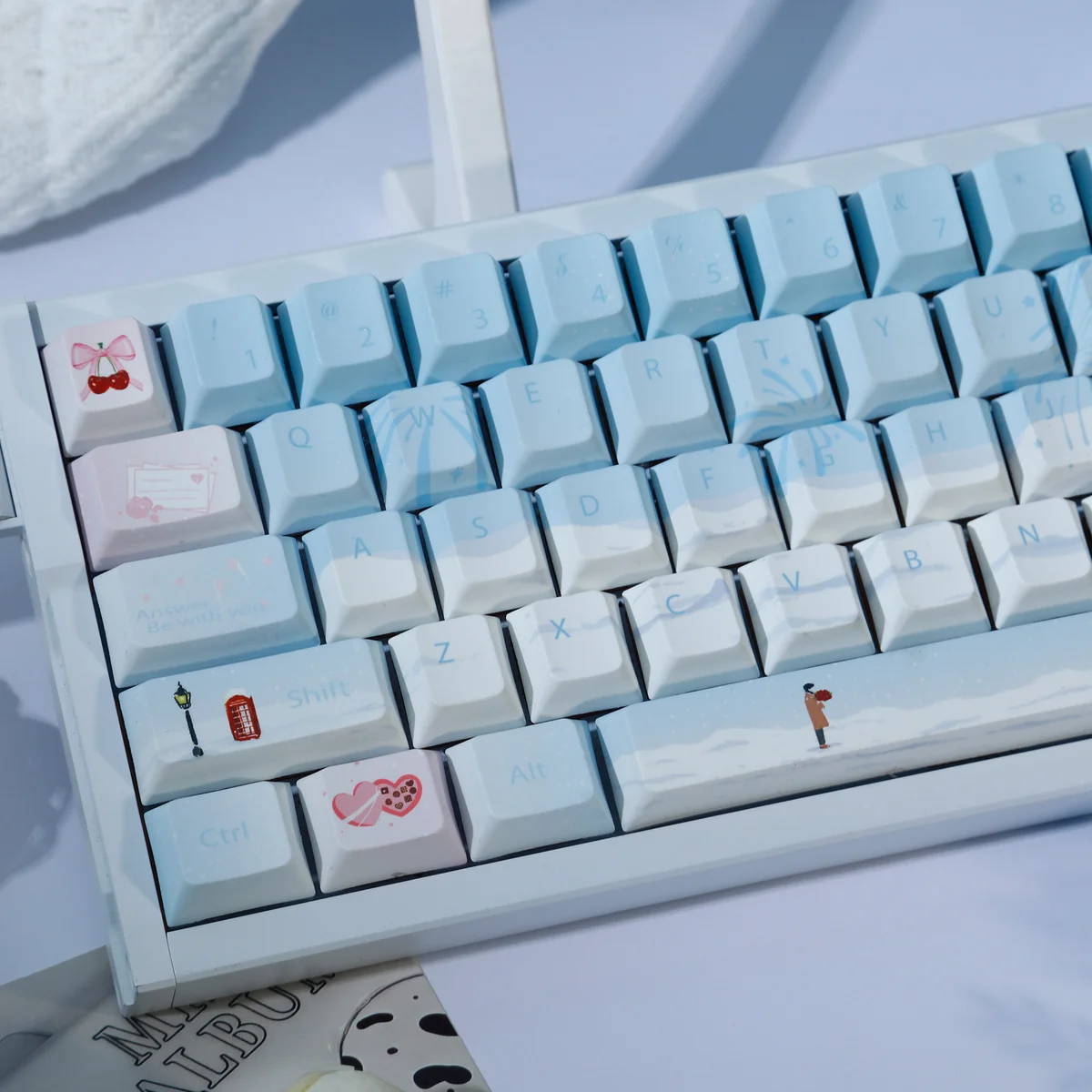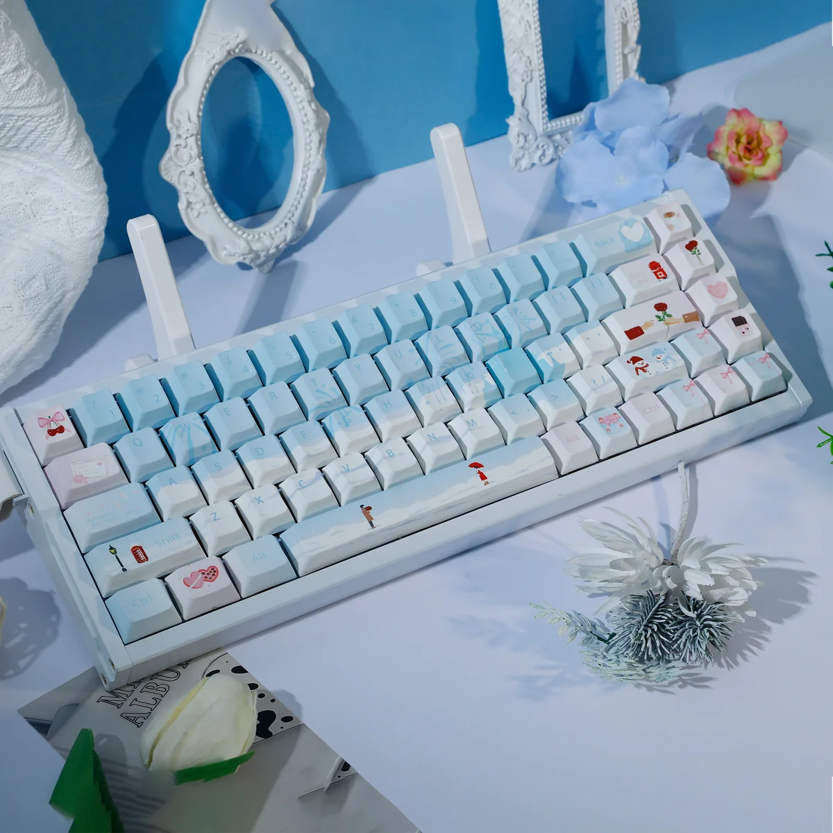 Transform your workspace into a serene winter wonderland with our exquisite Winter Romance Series Keycap Set. First of all, crafted from high-quality, durable PBT material, these Dye-Sublimation Keycaps offer a premium feel and lasting legends that won’t fade or wear over time. Then, the captivating design features a harmonious blend of soft pastel blue and pink, evoking the cozy elegance of a winter romance. So, this comprehensive 120-key set is designed in the popular Profile Keycaps, ensuring a comfortable and ergonomic typing experience for extended use. Moreover, it’s perfect for any mechanical keyboard enthusiast, these Blue Pink Keycaps provide a unique opportunity to personalize your setup. Therefore, experience the gentle touch and robust quality that only PBT can offer, making every keystroke a delight. In conclude, elevate your Mechanical Keyboard Keycaps collection with this truly artistic and functional set.