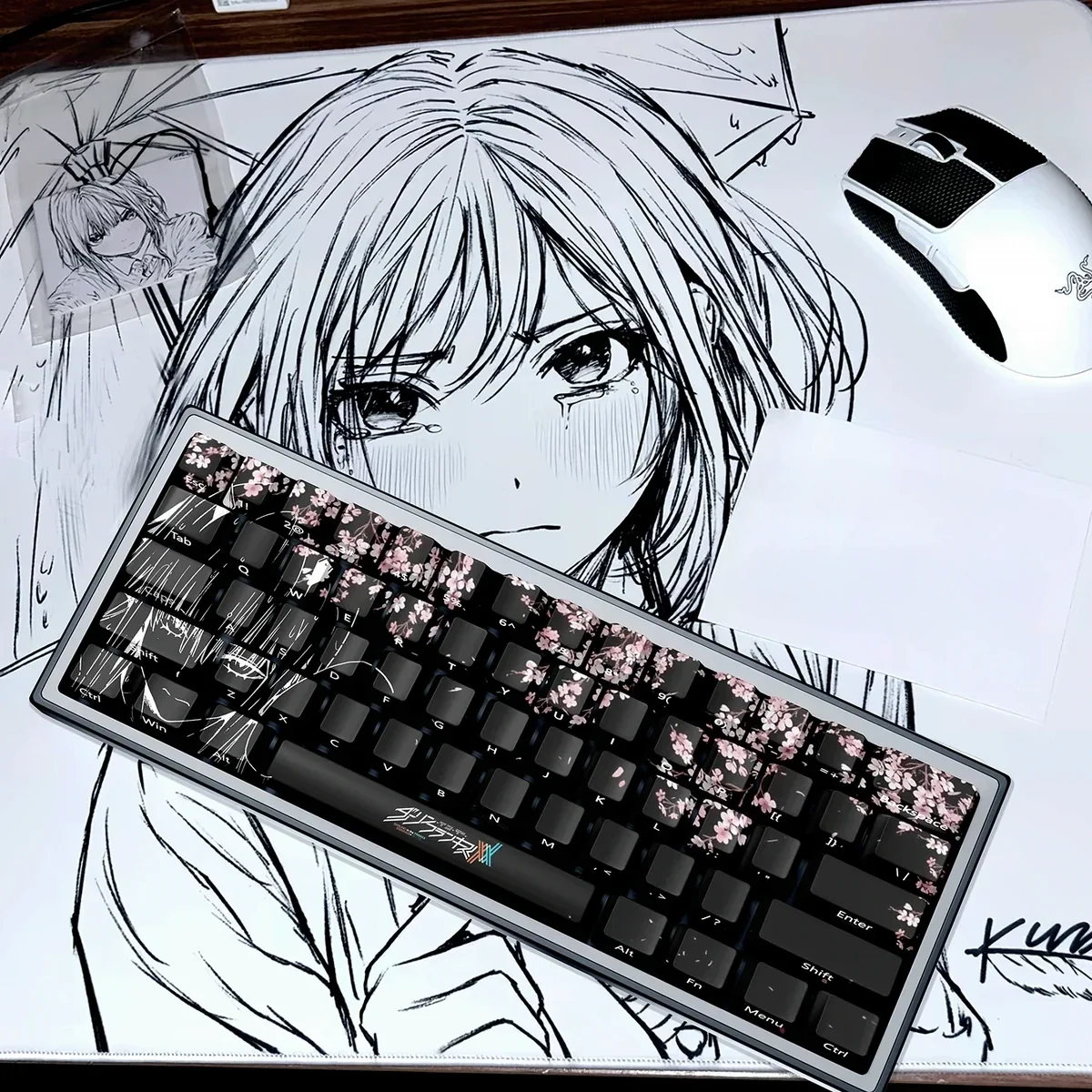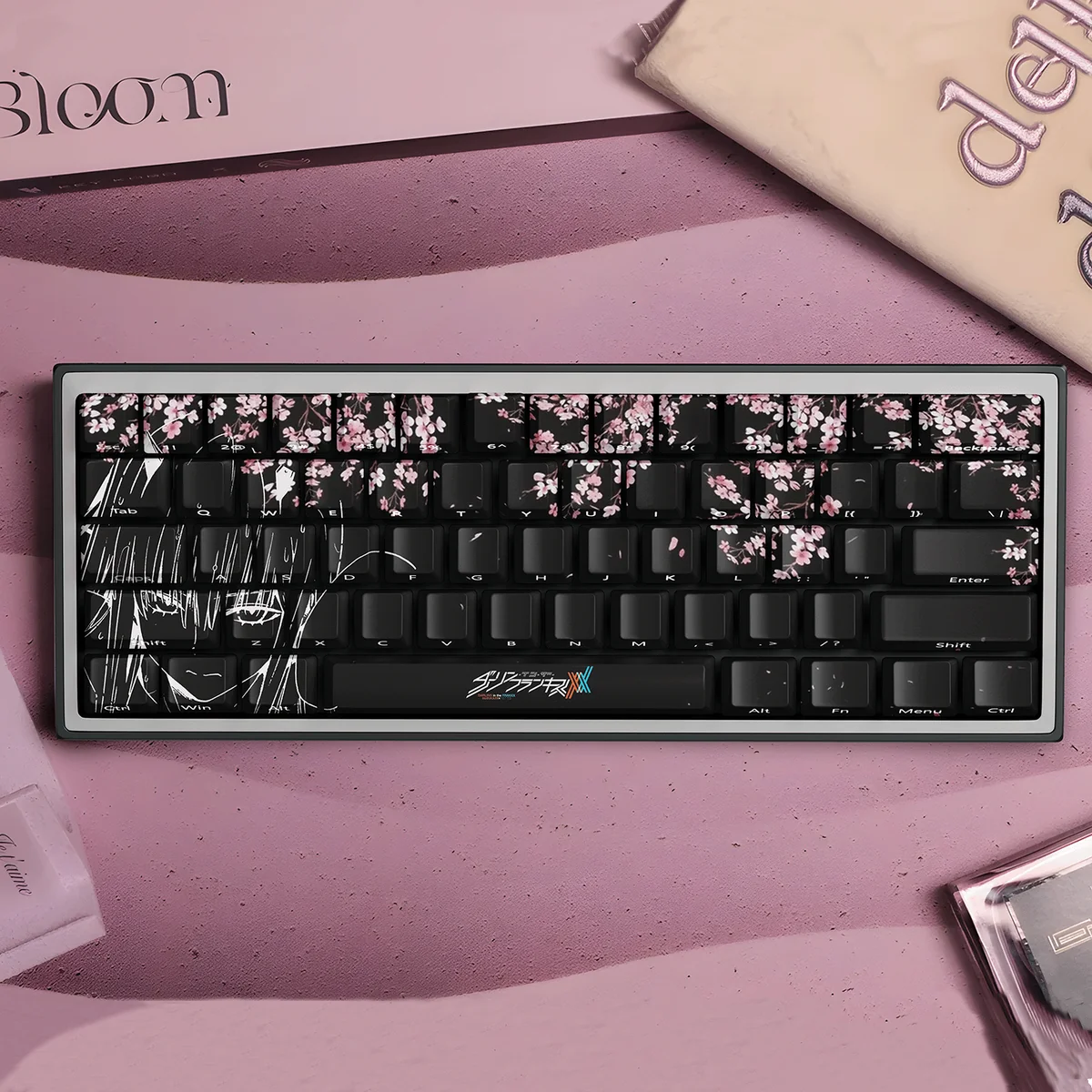 Immerse your keyboard in the captivating world of DARLING in the FRANXX with our exquisite Zero Two Keycaps. This premium Sakura PBT Keycap Set is a true celebration of the iconic Zero Two spirit, meticulously crafted to bring an artistic flair to your setup. Each keycap features brilliant dye-sublimation, ensuring the vibrant anime-inspired Zero Two design and elegant cherry blossom motifs remain crisp and fade-resistant, even through intense gaming sessions or extensive collection display. Elevate your Custom Anime Keyboard with these durable Dye-Sub Mechanical Keycaps, designed for enthusiasts who demand both stunning aesthetics and superior tactile feel. Experience the excitement of personalizing your mechanical keyboard with a set that truly stands out. These Zero Two Keycaps are more than just accessories; they are a statement of passion and style.