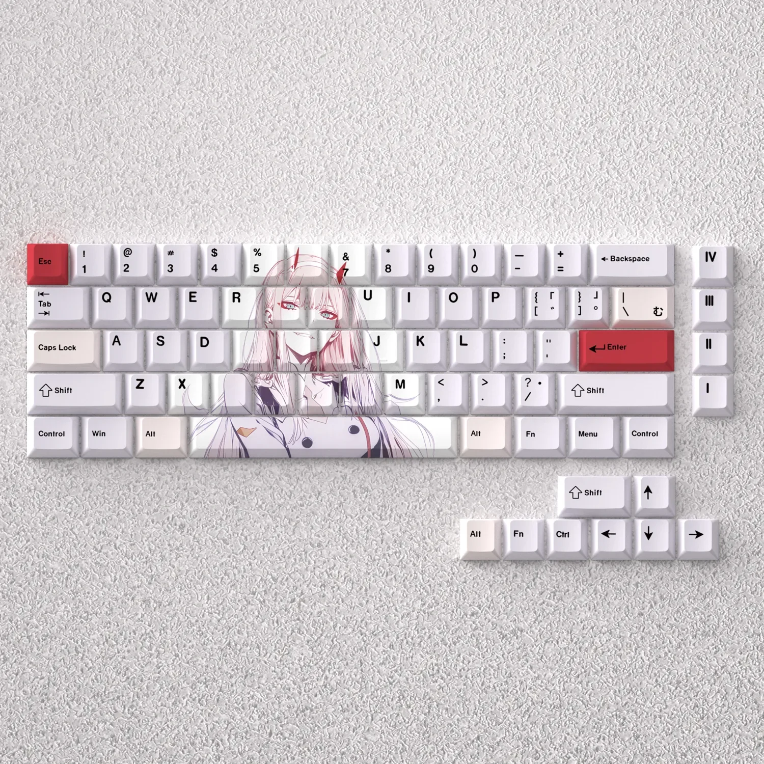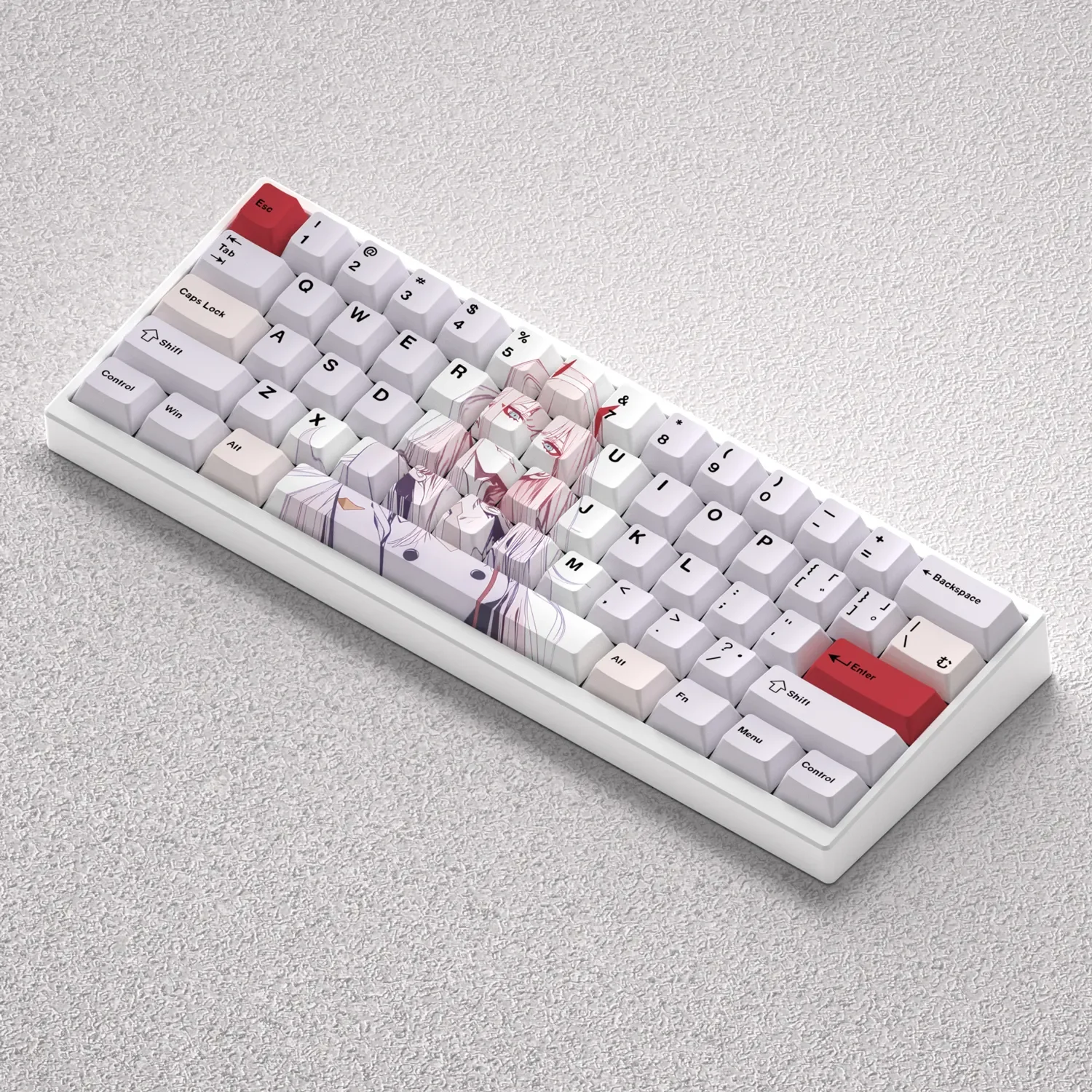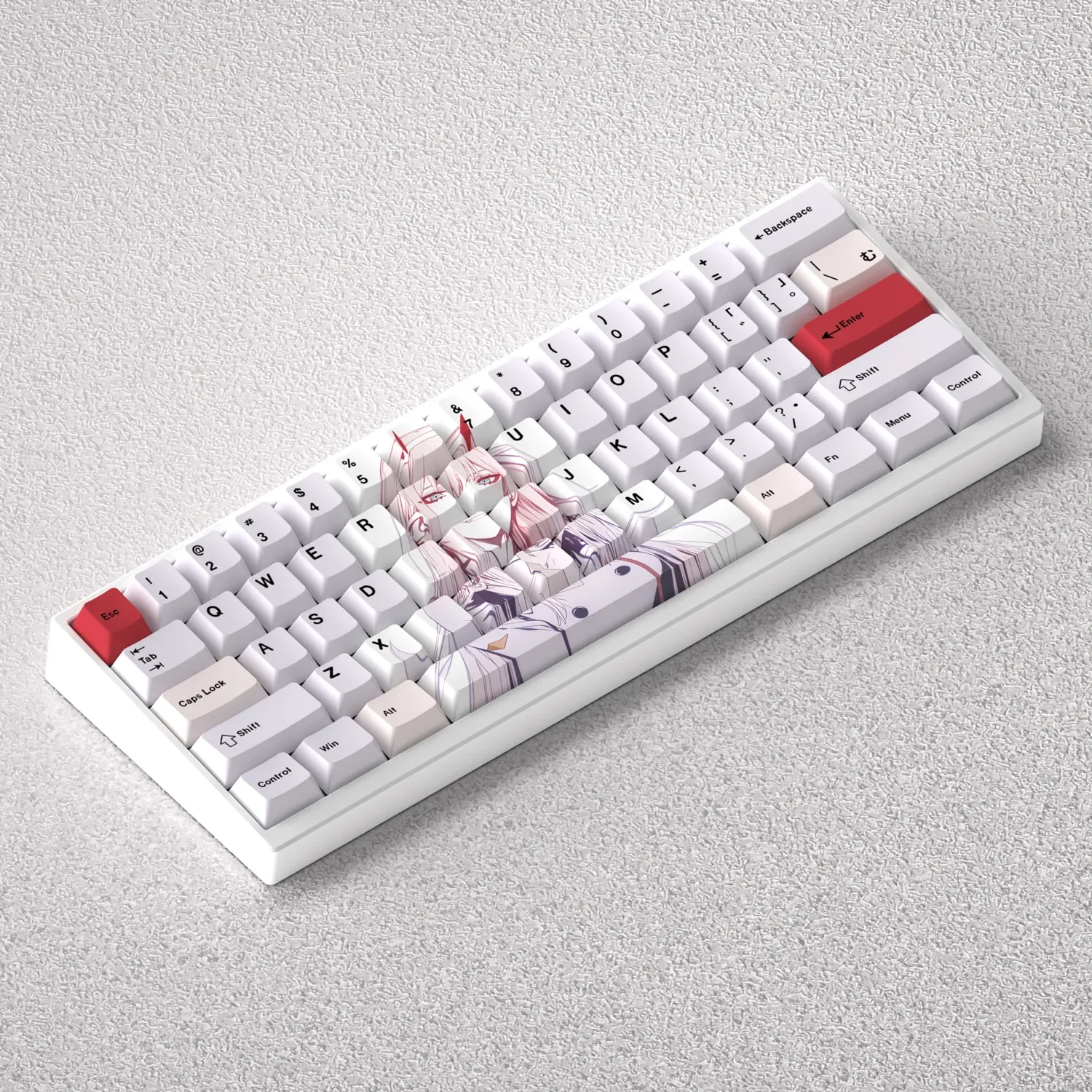 Unleash the powerful spirit of Zero Two across your desk with this breathtaking DARLING in the FRANXX: Iconic Zero Two Cherry Keycap Set. Dive into the unforgettable world of Darling in the Franxx every time you type or game. These aren’t just any Zero Two keycaps set that they are a premium tribute, crafted from durable PBT material for an exceptional feel and lasting vibrancy. Featuring crisp, dye-sublimated legends, the iconic pink and white anime aesthetic comes to life with unmatched clarity. Perfect for dedicated fans, gamers, and creators, these Darling Franxx keycaps transform your setup into a unique statement piece. Experience superior tactility and a visually striking upgrade that truly stands out. Searching for custom mechanical keycaps that express your individuality? This high-quality PBT anime keycaps set offers the ultimate blend of style, durability, and a deep connection to your favorite series. Make your keyboard a legend.